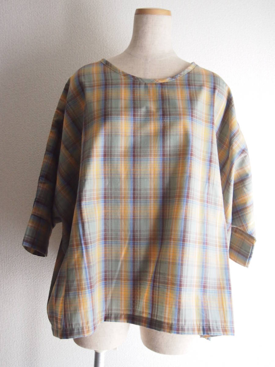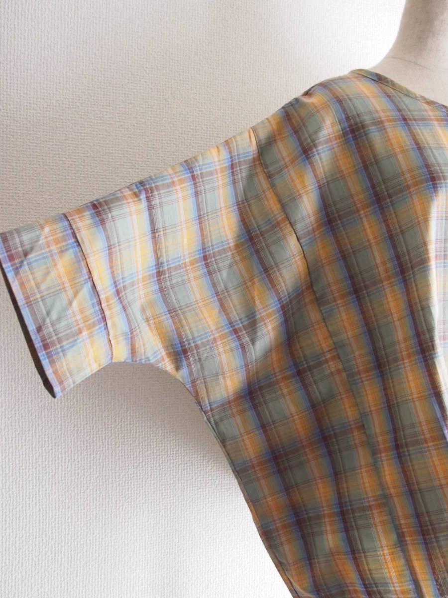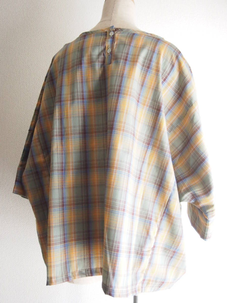 O313【新品未使用15,000円】seaside freerideシーサイド 5分袖 チェック柄 シャツブラウス たっぷりサイズ ブラウス オーバーサイズシャツ