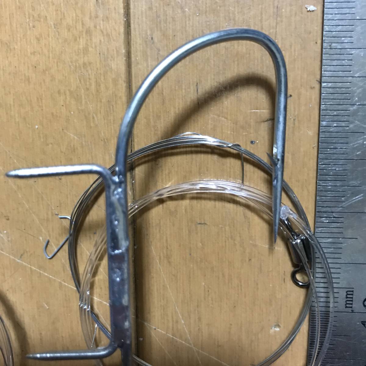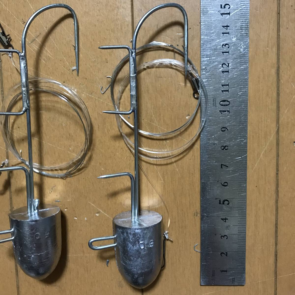 太刀魚テンヤ50号エサの取り付けが簡単な3点固定式 全長15cmナイロンリーダー16号65cm餌巻銅線0・5mm付仕掛け4セツト亜鉛メッキ加工仕様により針の掛が良いです。発送はレターパックライト全国一律430ポスト投函になります。その他の発送方法で、ゆうパック又は佐川急便での、対応も致します。
