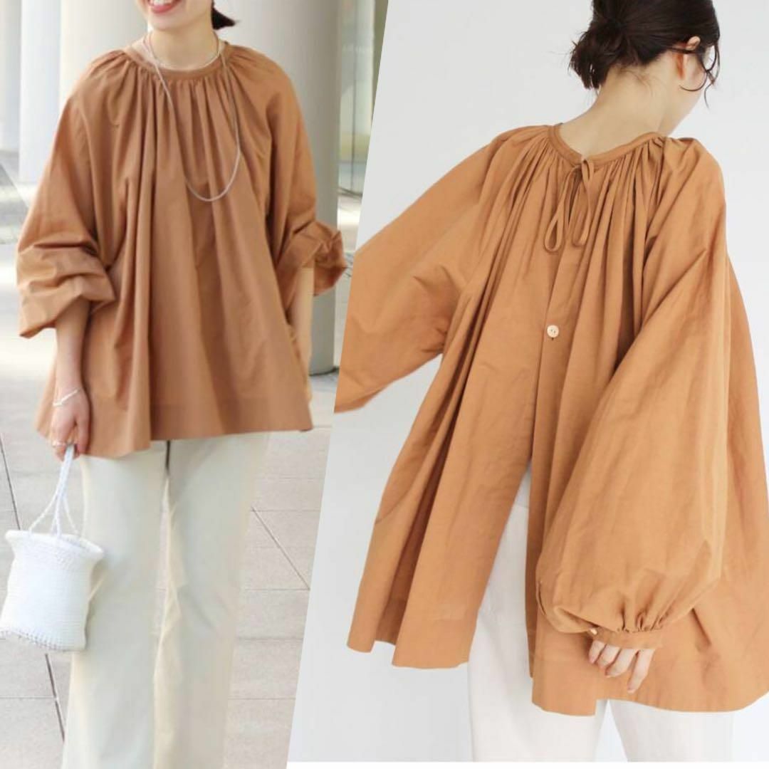 ギャザーをふんだんに入れたボリュームたっぷりのブラウス。