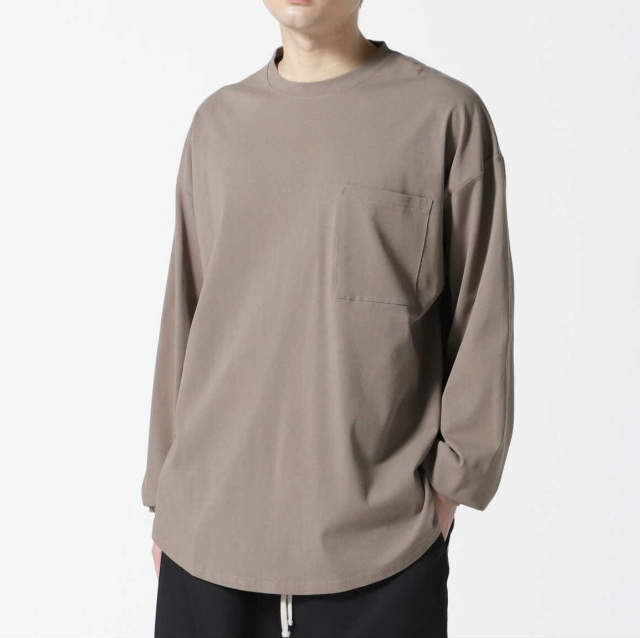 糸の撚りを通常よりもさらに強く撚ることで耐久性や吸水性、速乾性に優れた生地感を生み出す強撚糸を用いたロングスリーブTシャツ。
