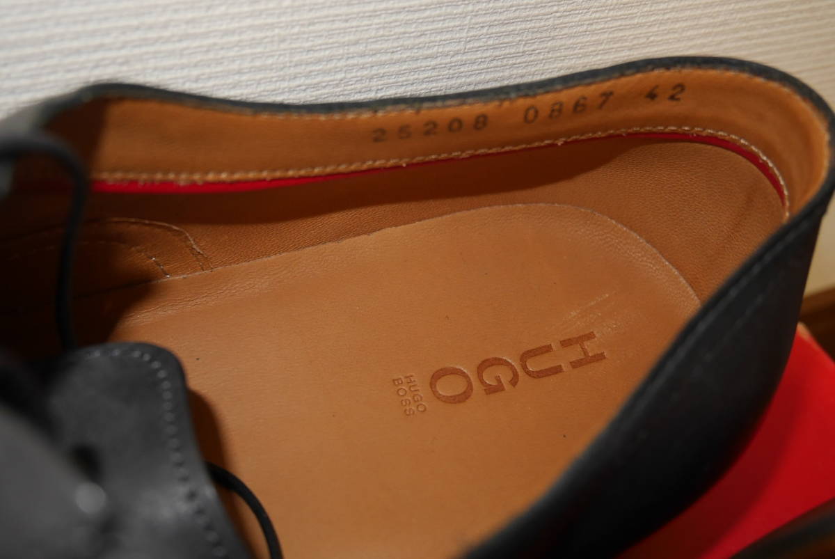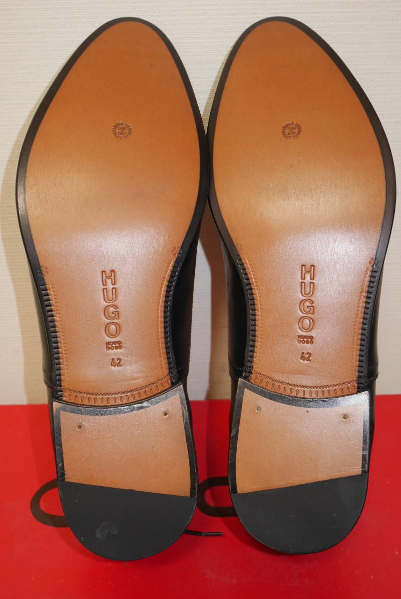HUGO BOSS ヒューゴボス ビジネスシューズ ブラック 42インチ 27.5cm オールレザ 革底 元箱付 未使用 本物