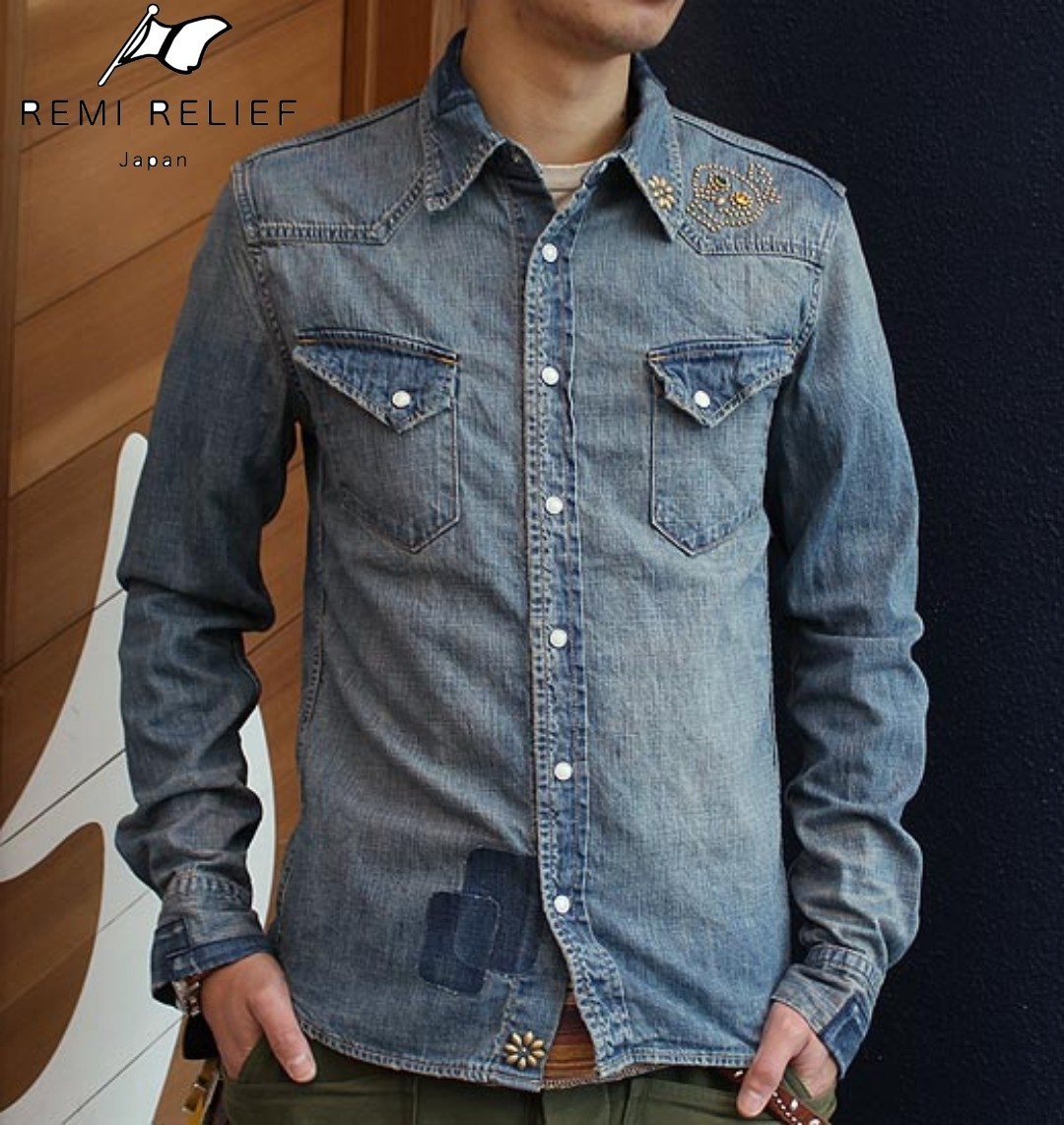こちらは、デニムの産地、岡山県児島市に自社工場を構えるブランド、REMI RELIEF【レミレリーフ】の名作シリーズ!高級デニム ウエスタン シャツになります!