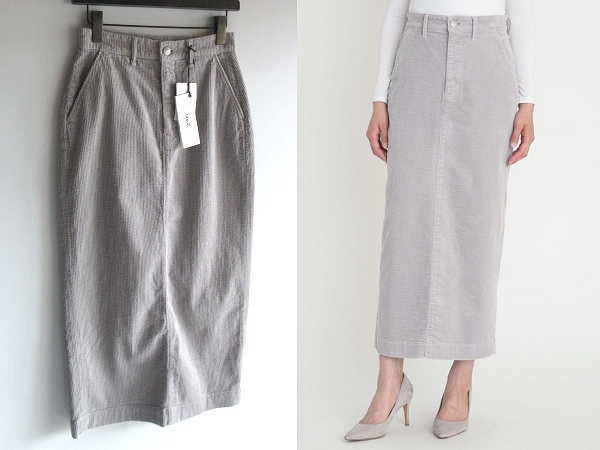 新品タグ付 YANUK ヤヌーク ストレッチ 太畝コーデュロイ バックベンツ ロングスカート S ライトグレー ドゥーズィエムクラス取扱ブランド