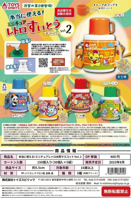 トイズスピリッツから発売の『ミニチュアレトロ すいとうマスコット Vol.2』全5種のうち「D 小鹿(赤) になります。縦5.5センチ、横3センチとミニサイズですが、キャップが外れたり、中が空洞になっているため、水を入れることができます。袋未開封(完全密封ではありません)、リスト付きです。送料ですが普通定形外(補償なし)でよろしければ140円になります。