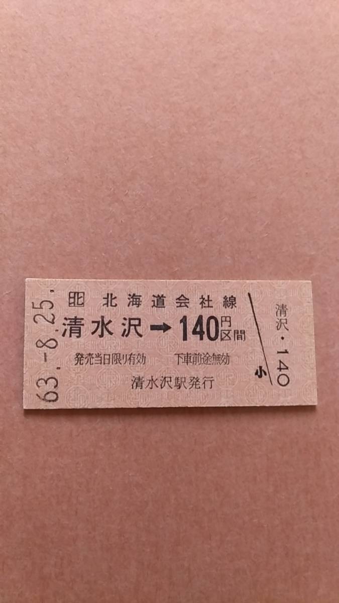 JR北海道 石勝線 清水沢→140円区間 清水沢駅発行