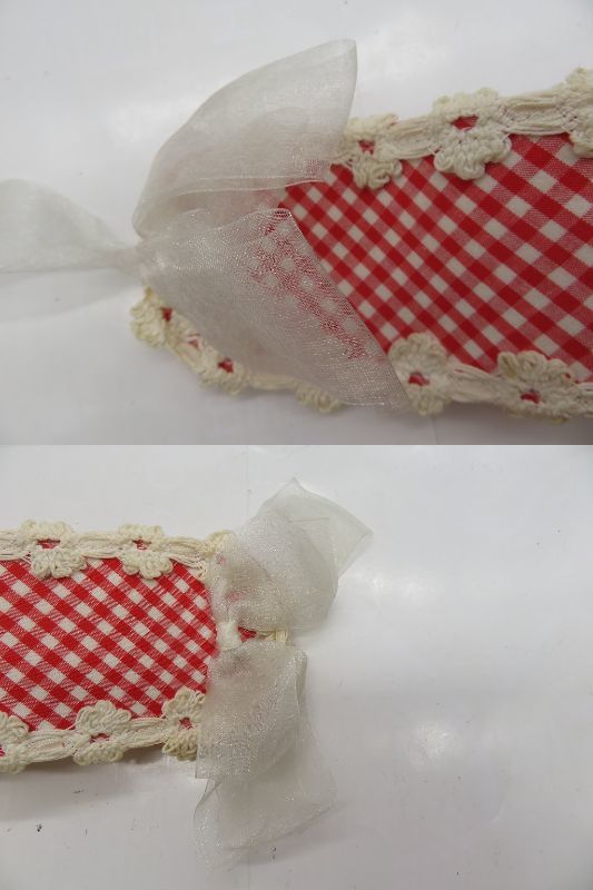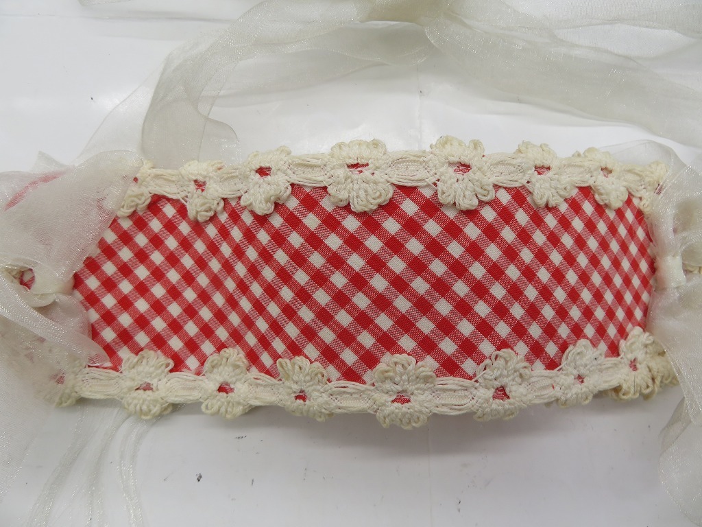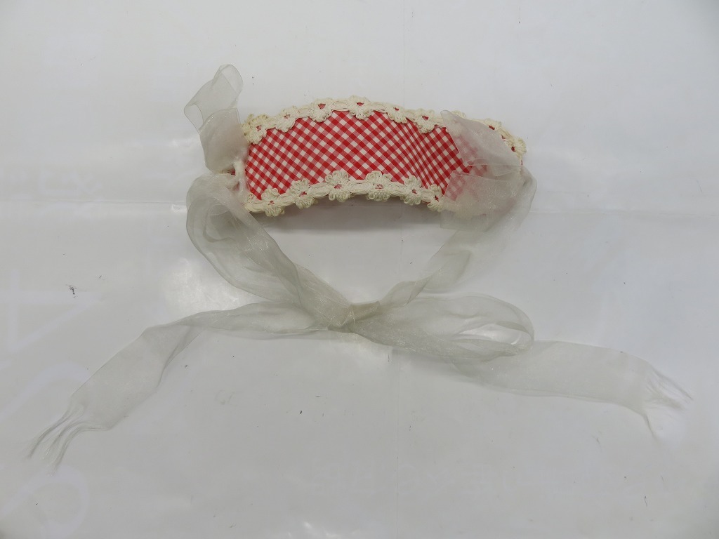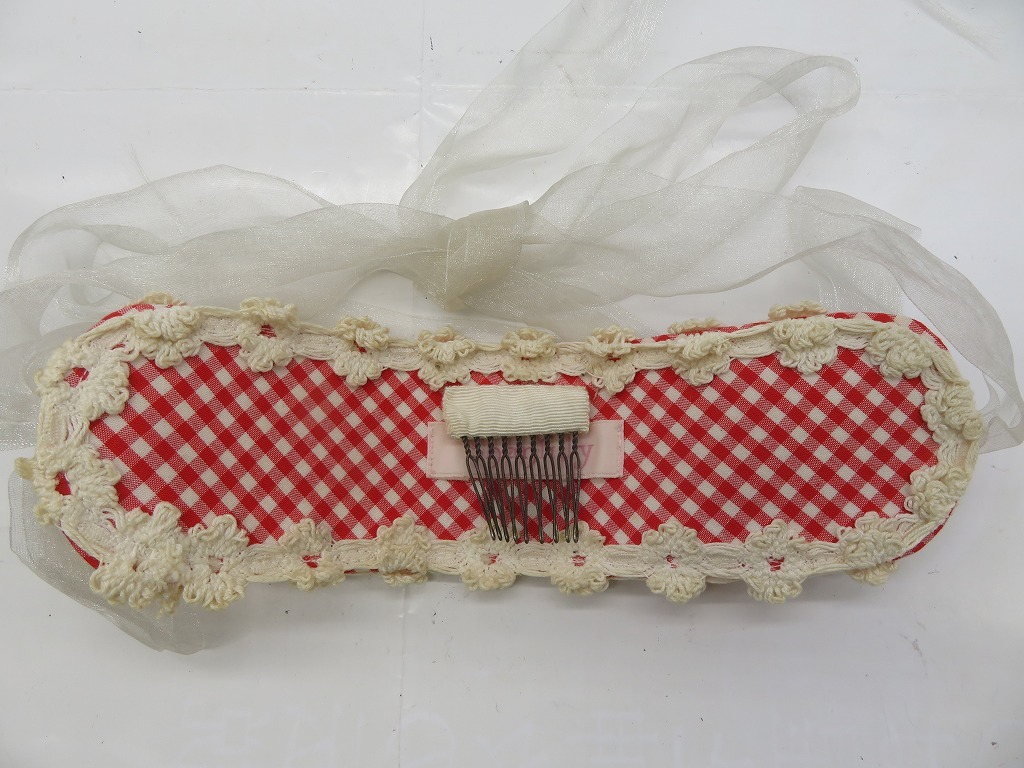 AN301★Chantilly/シャンテイィ ヘッドドレス レッド×ギンガムチェック フラワーレース オーガンジーリボン ロリィタ 中古品 | ||