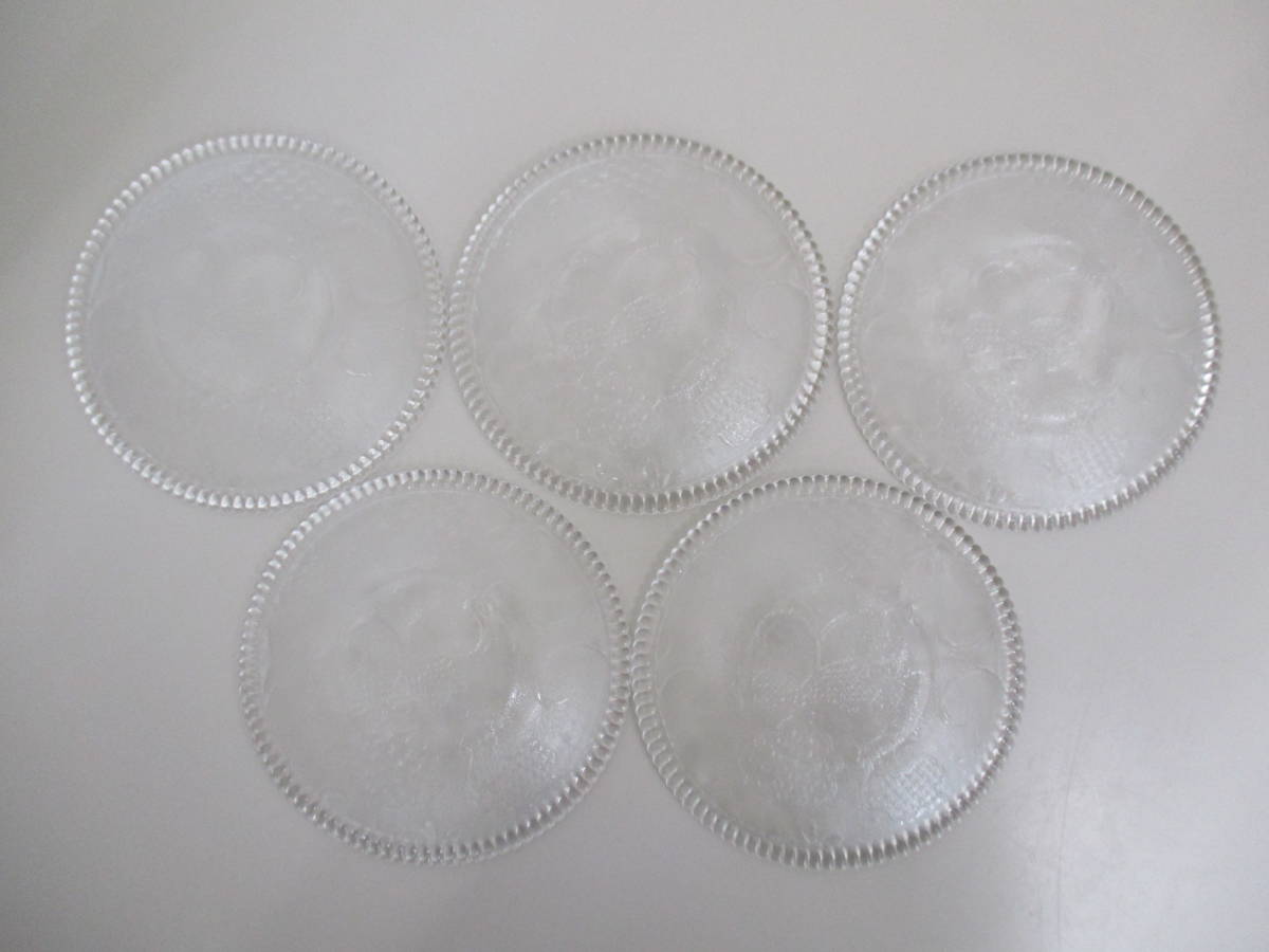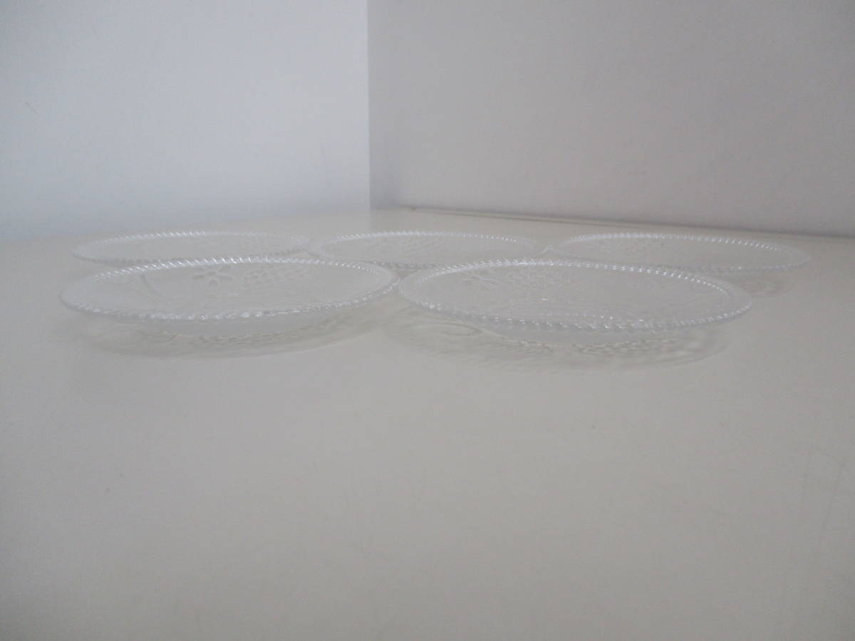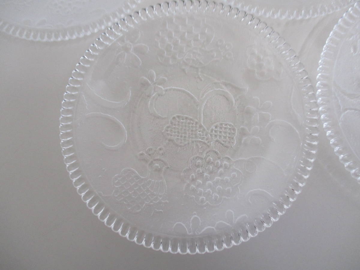 F16 ガラス皿 孔雀柄 5枚セット レトロ レア