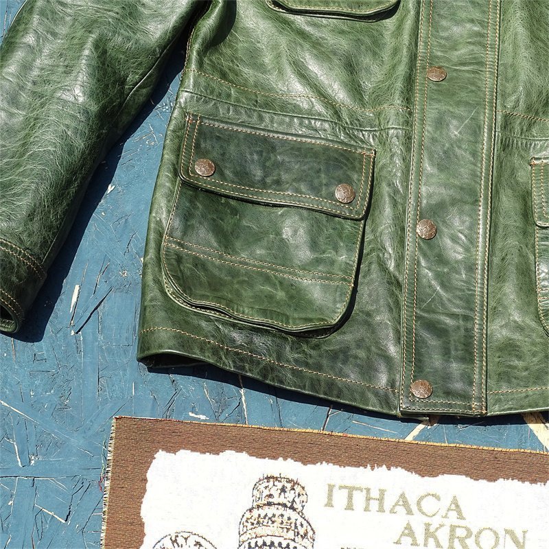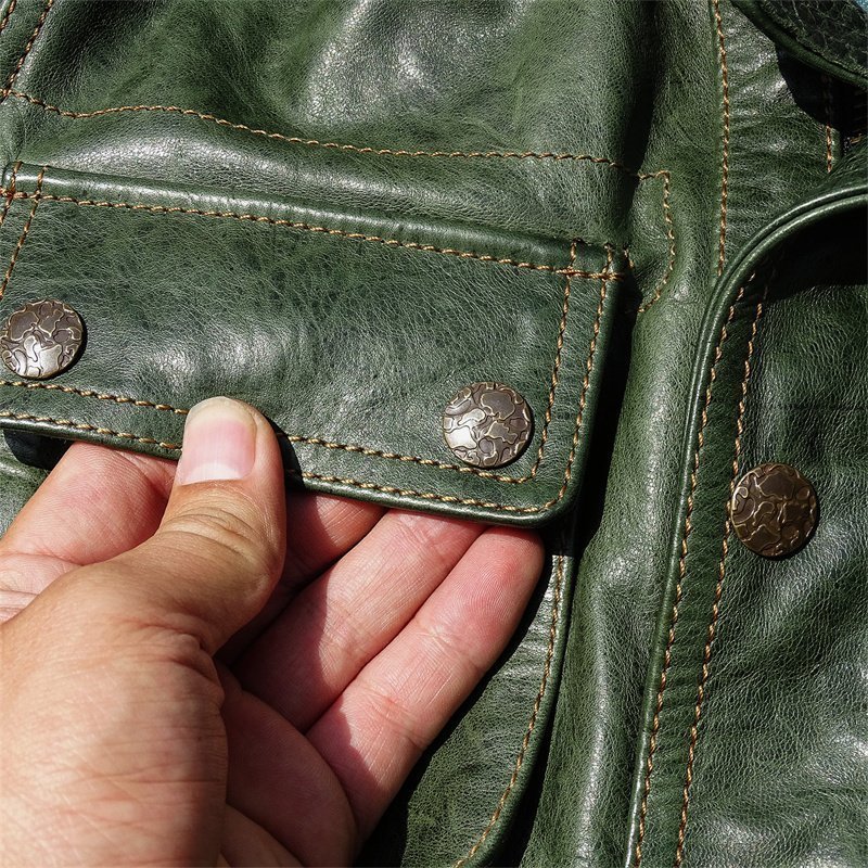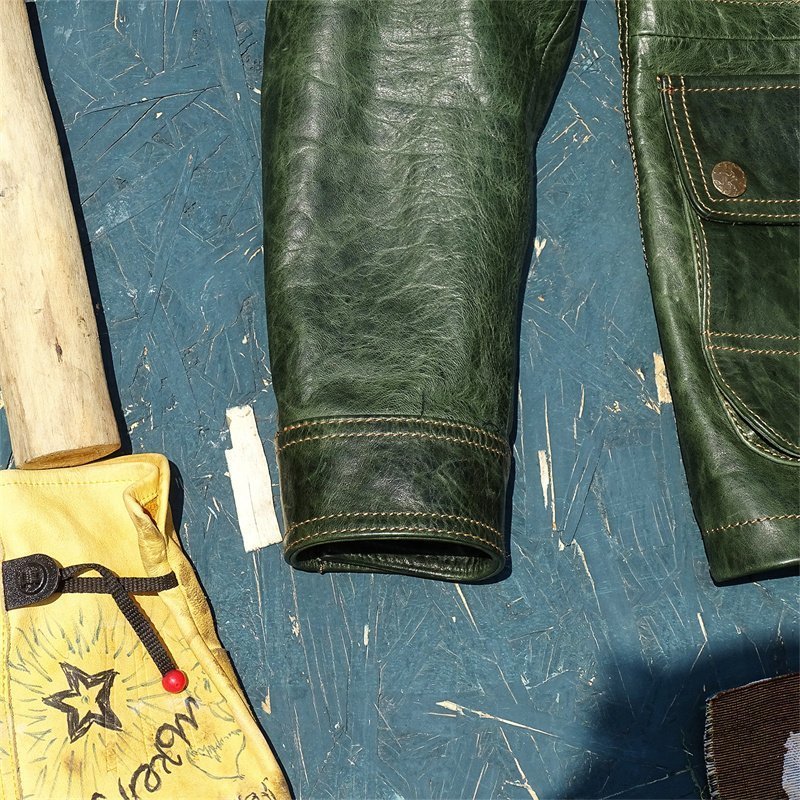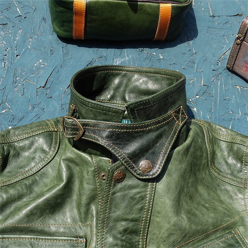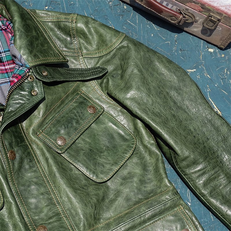 レザージャケット 上品 アメカジM65 本革 馬革 1.2mmユーズド加工ホースハイド1.3mm ライダースジャケット  革ジャン S~4XLグリーン