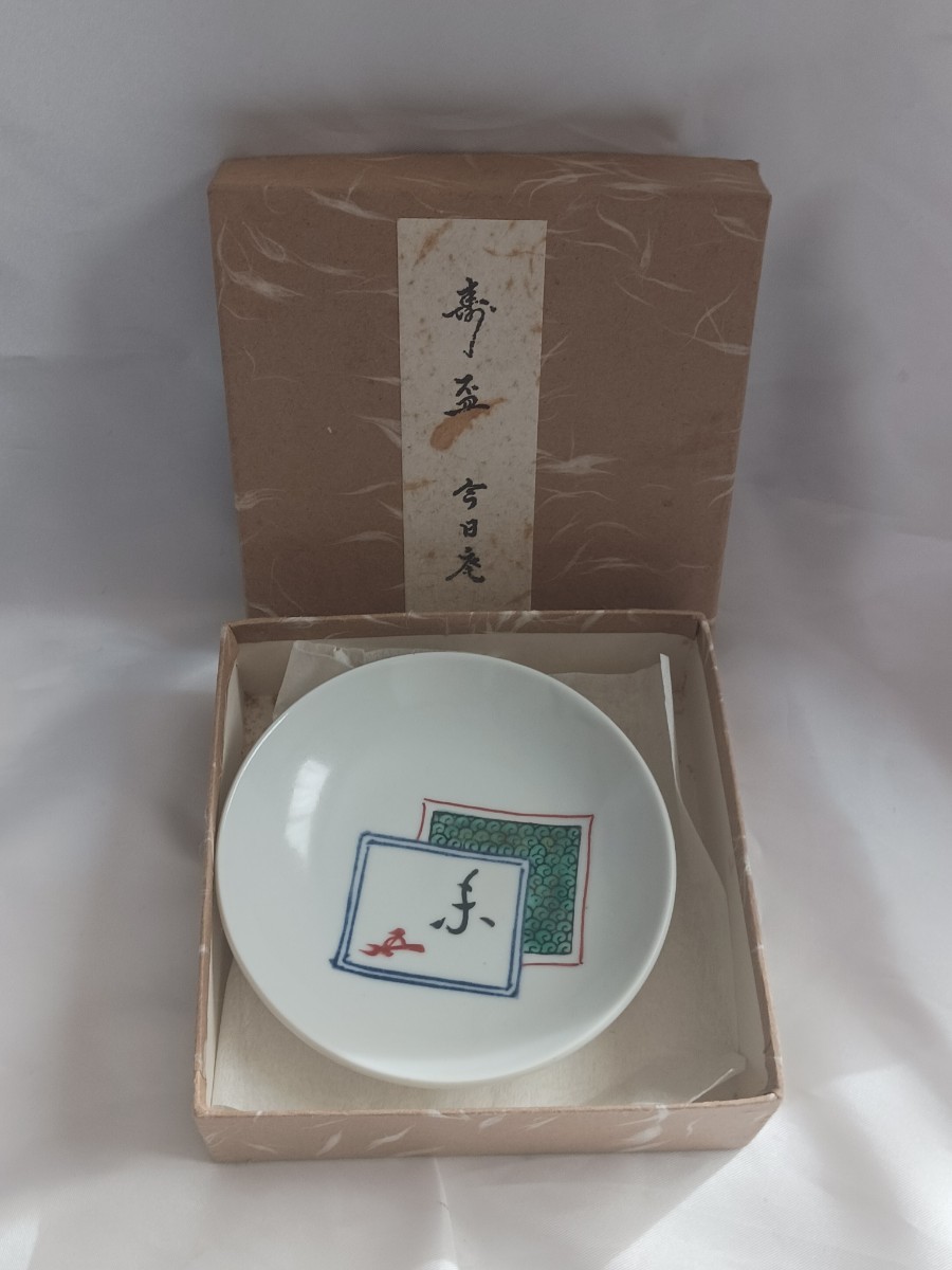 ●作家物 九谷焼 染付色絵盃 今日庵 十五代鵬雲斎