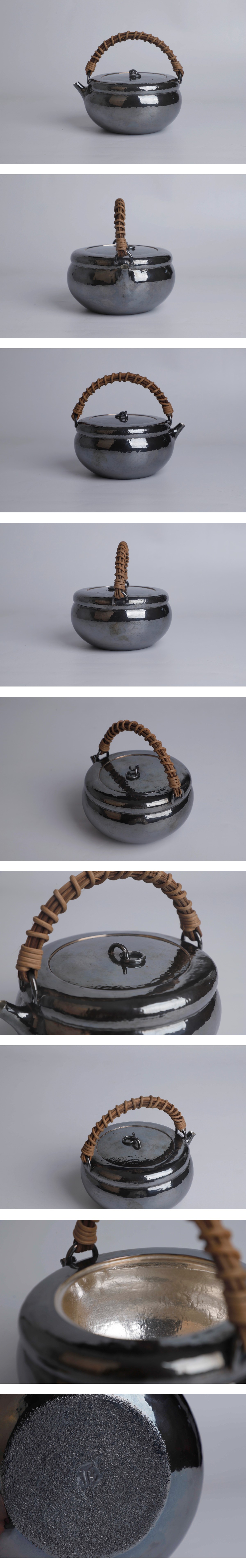 純銀保証 北村静香造 南鐐 瓢形 籐編提手 湯沸 銀瓶 純銀製 時代物 古美術品 煎茶道具