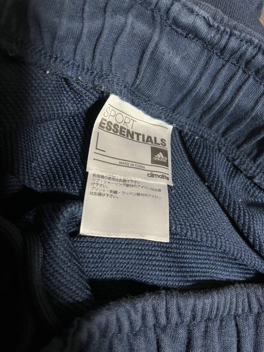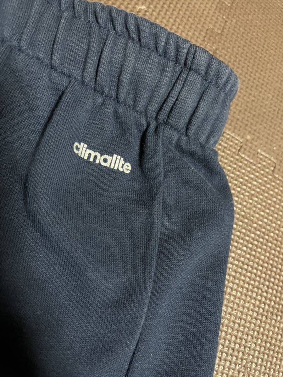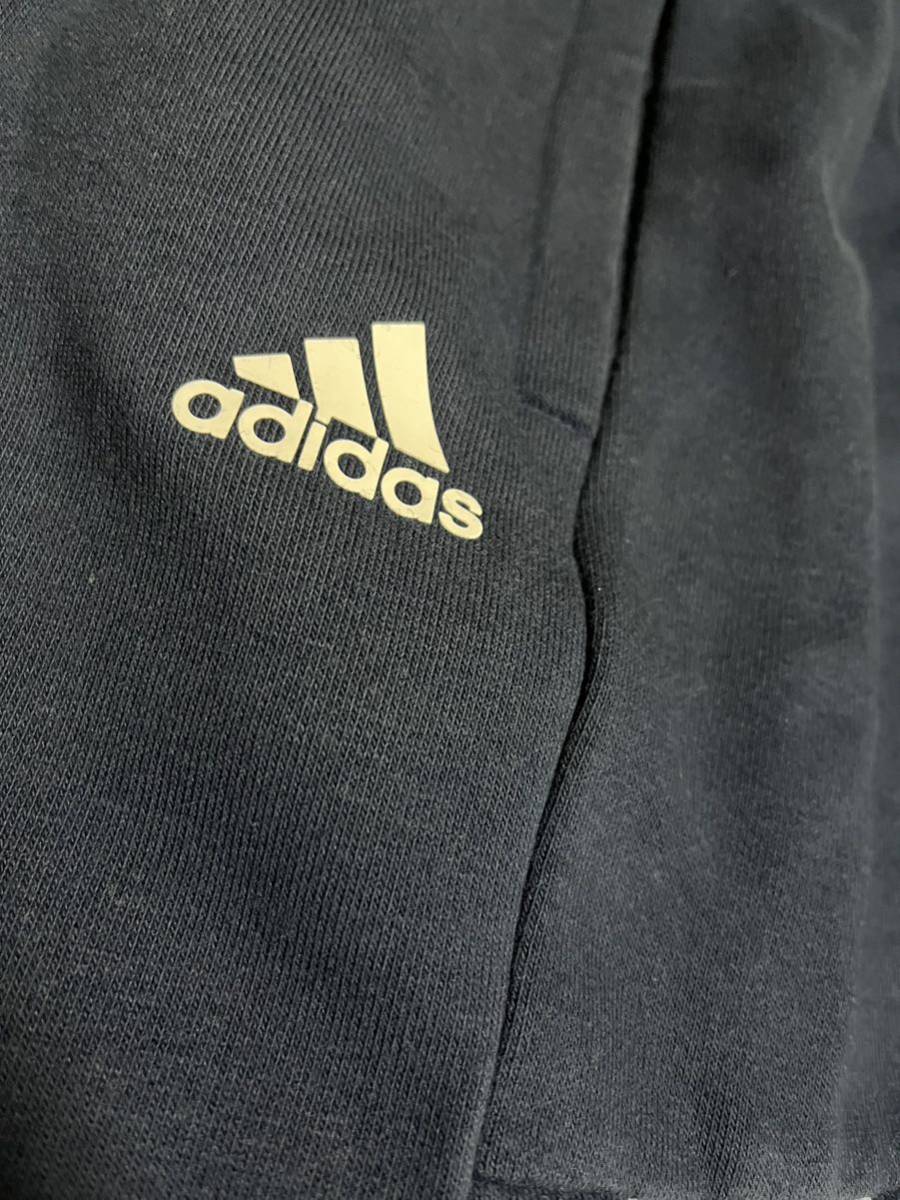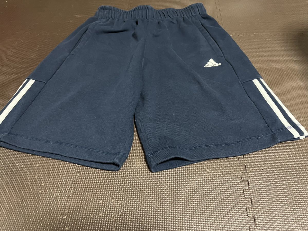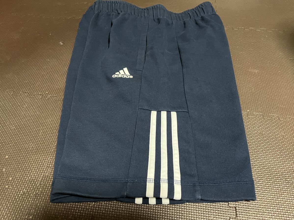 美品adidasスウェット濃紺、ロゴ白、ライン白3本ストレッチハーフパンツ