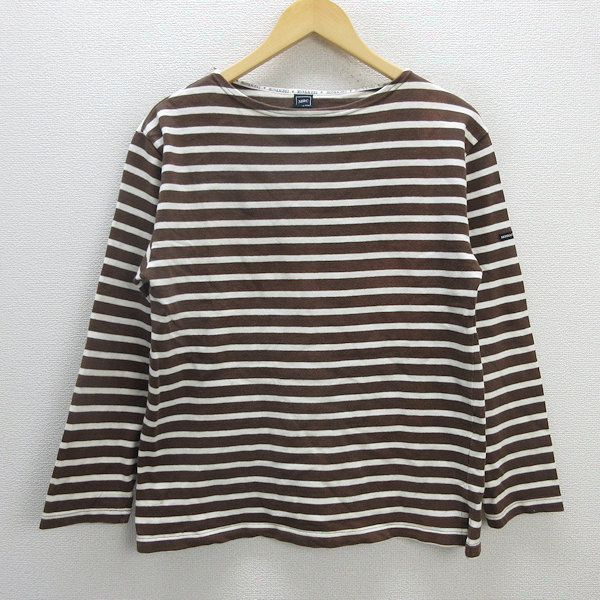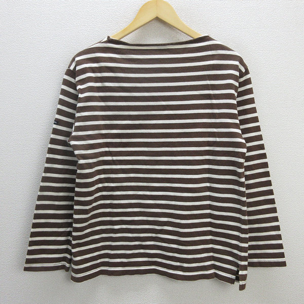 k■日本製■MRC MONRACHET ボーダー柄 長袖バスクシャツ【LL】茶/LADIES■97 【中古】