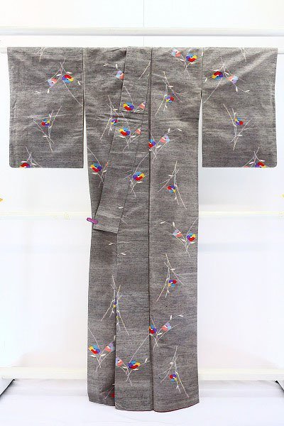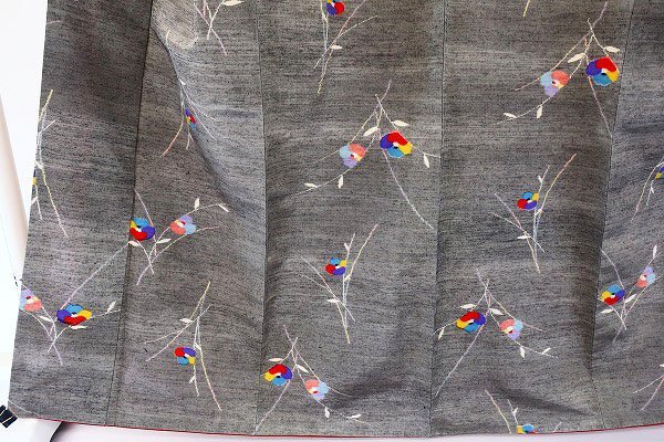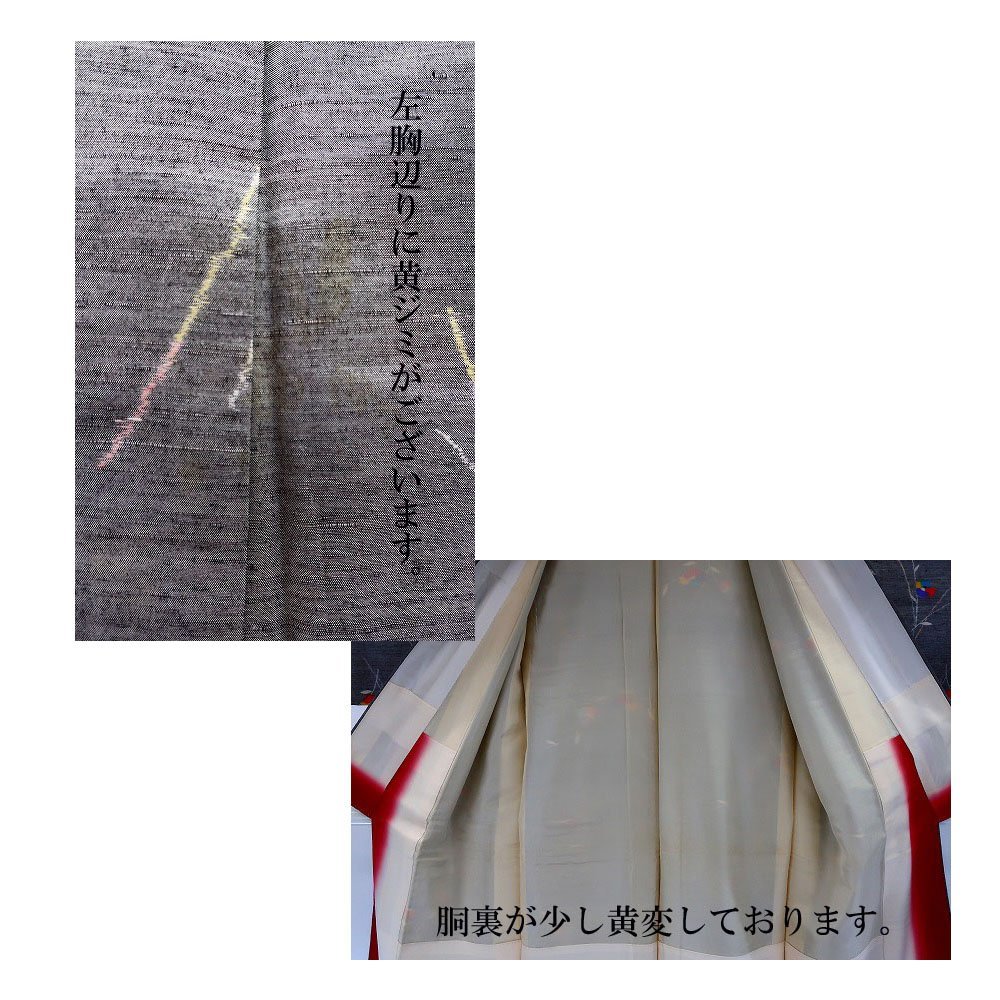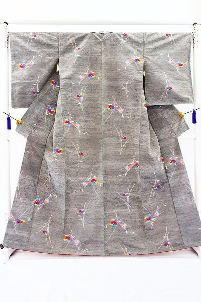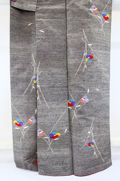 〔着物の色〕 灰地 〔八掛の色〕 臙脂ぼかし 〔着物の素材〕 正絹 |