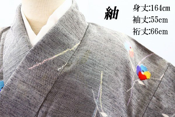 【着物フィ】紬 灰色 椿 身丈164cm 裄丈66cm 仕立て上がり 正絹 袷 お洒落 可愛い m-5359 |