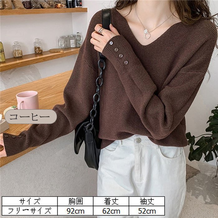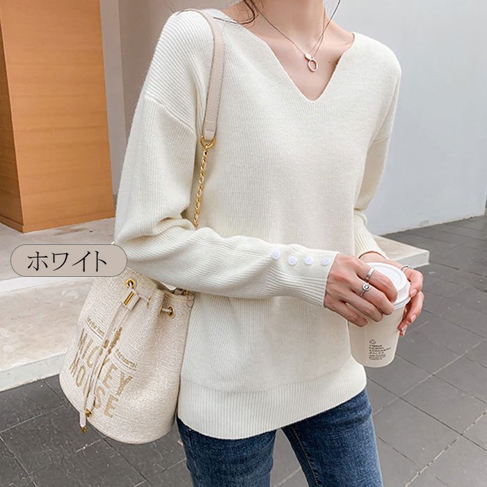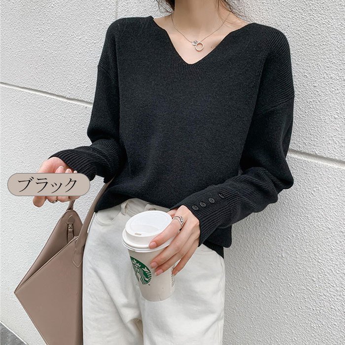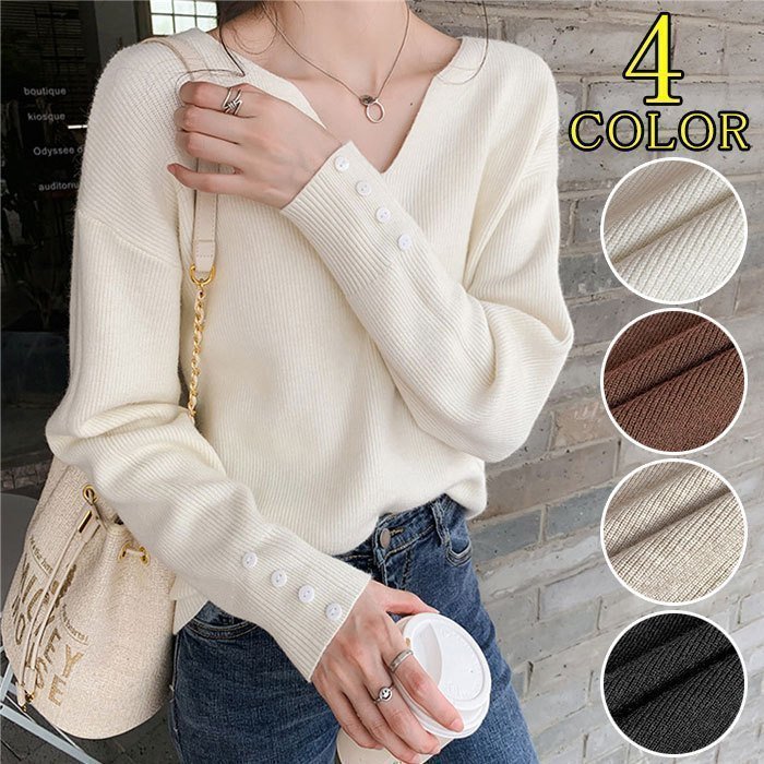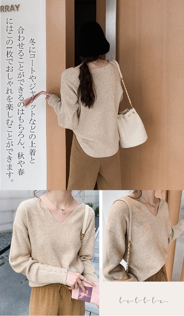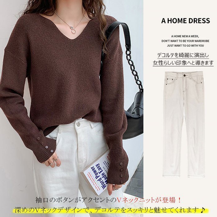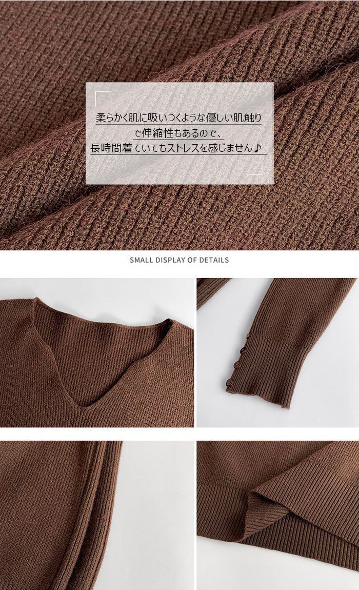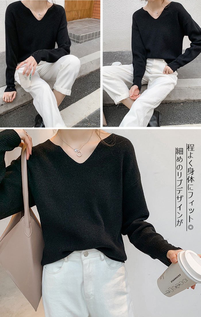 セーター レディース リブ ニット トップス Vネック タイト シルエット ストレッチ カットソー長袖無地秋冬リブ ニット ☆多色選択/1点