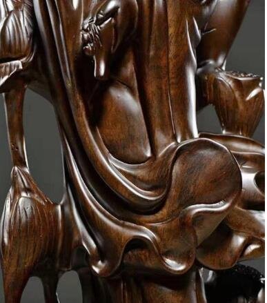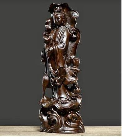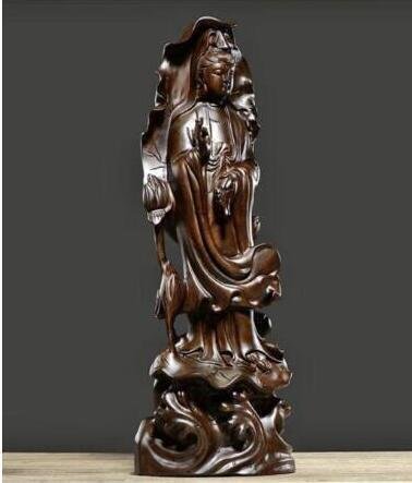 高品質★ 仏教美術 精密細工 木彫り 黒檀木 観音菩薩像 仏像 置物 高さ30cm