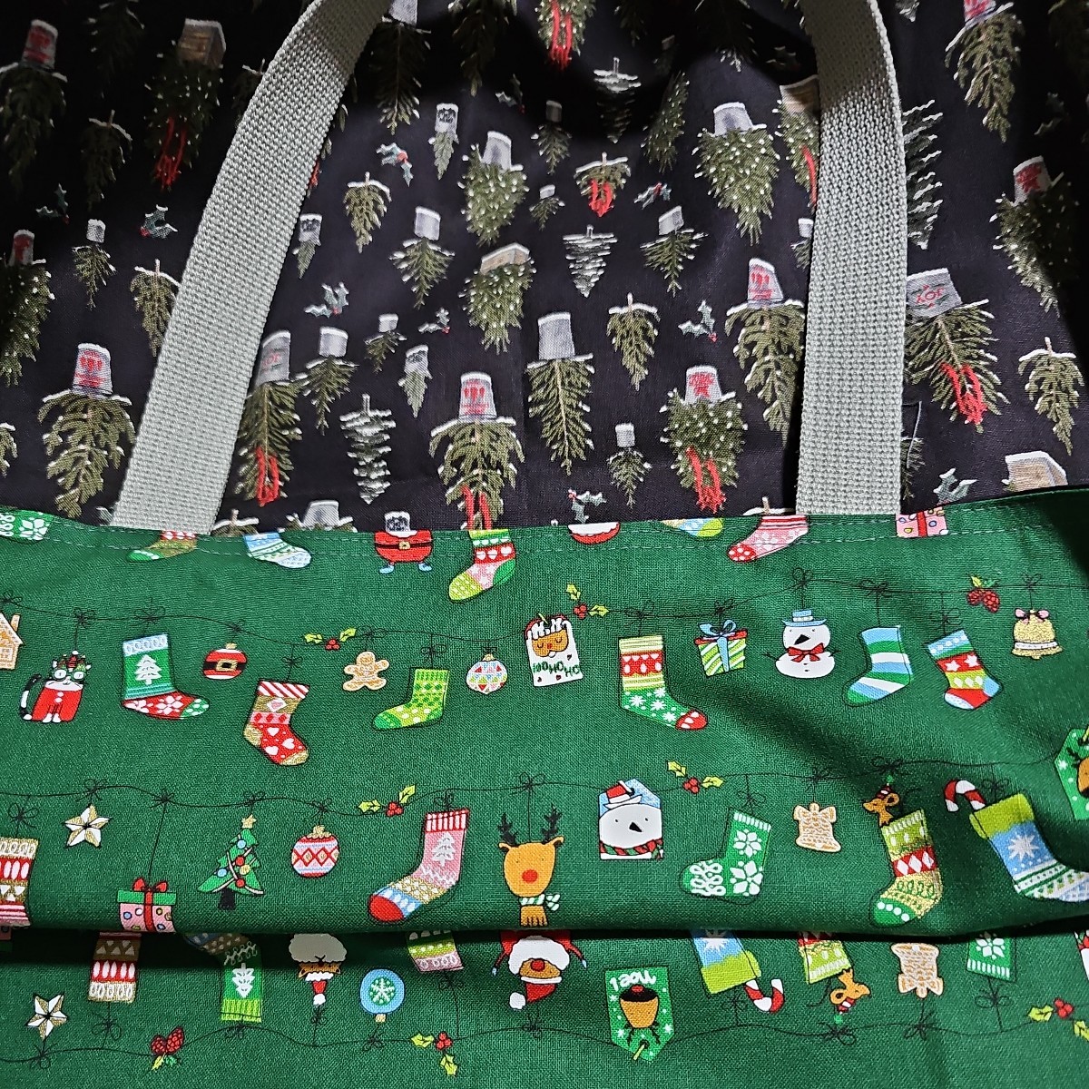 サイズは、高さ40cm、横 上部54cm、底部38cm、マチ15cm、ヒモ49cmです。