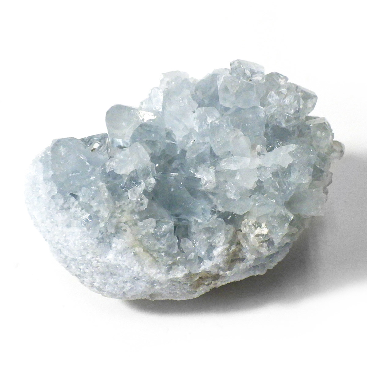 セレスタイト(天青石)母岩付きクラスターです。マダガスカル産のものは、母岩が丸みを帯びており、土台が白っぽいのが特徴です。丸みを帯びた可愛いフォルムで、透明感ある濃いブルーの結晶は非常に魅力的です。