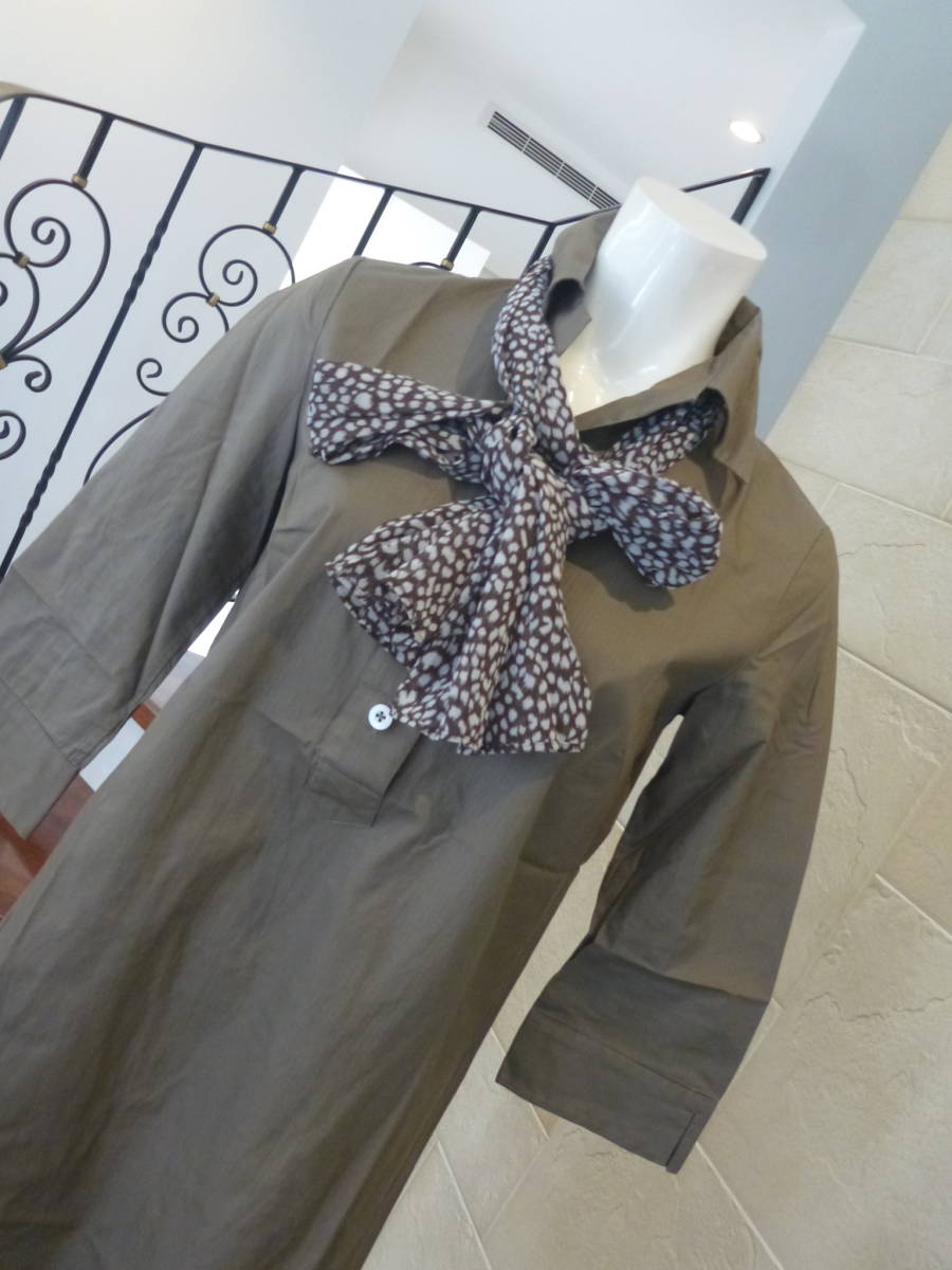 2.5万 超美品 UNITED ARROWS ユナイテッドアローズ★茶 ブラウン スカーフリボン付き 7分袖 チュニック丈 シャツ 38 M相当