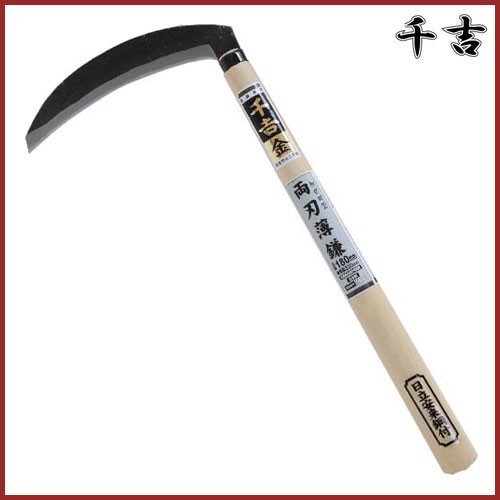 千吉 金 加世田型両刃薄鎌 180mm 38cm 鋼付 カマ 草刈り鎌 かま 除草用品 園芸 草刈鎌