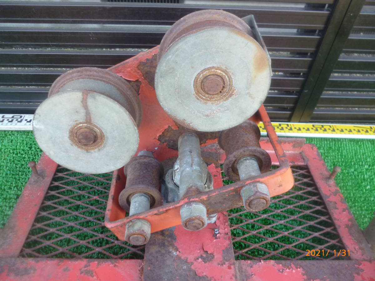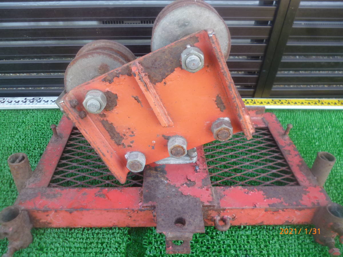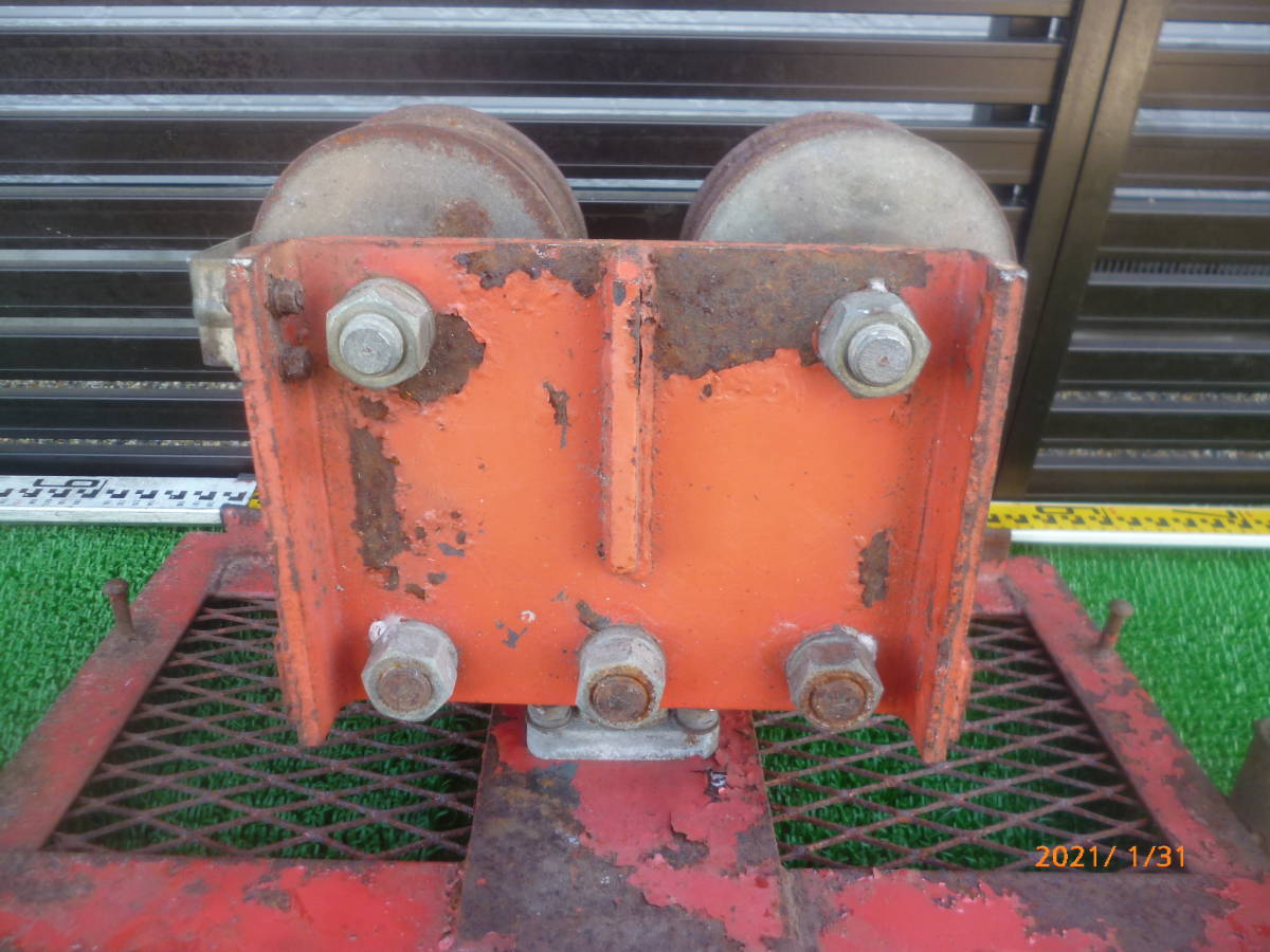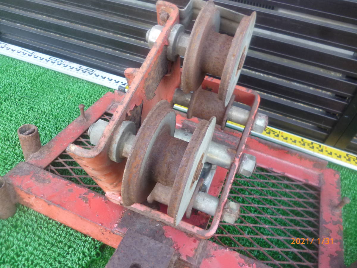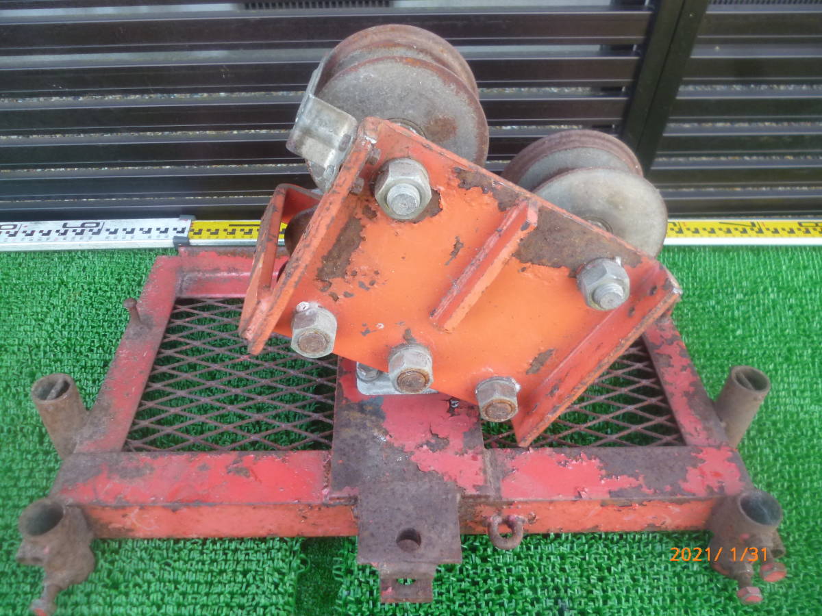 滑車 詳細メーカー不明 ( 自在 トロリー トロリ ケーブル ホイスト アングル 土台 索道 林業 山仕事 集材機 ウインチ 早期終了 即決アリ ①