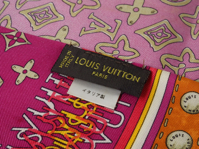 詳細:ルイヴィトン LOUIS VUITTON バンドー・モノグラム マップ リボンスカーフ M74569 オレンジ パープル
