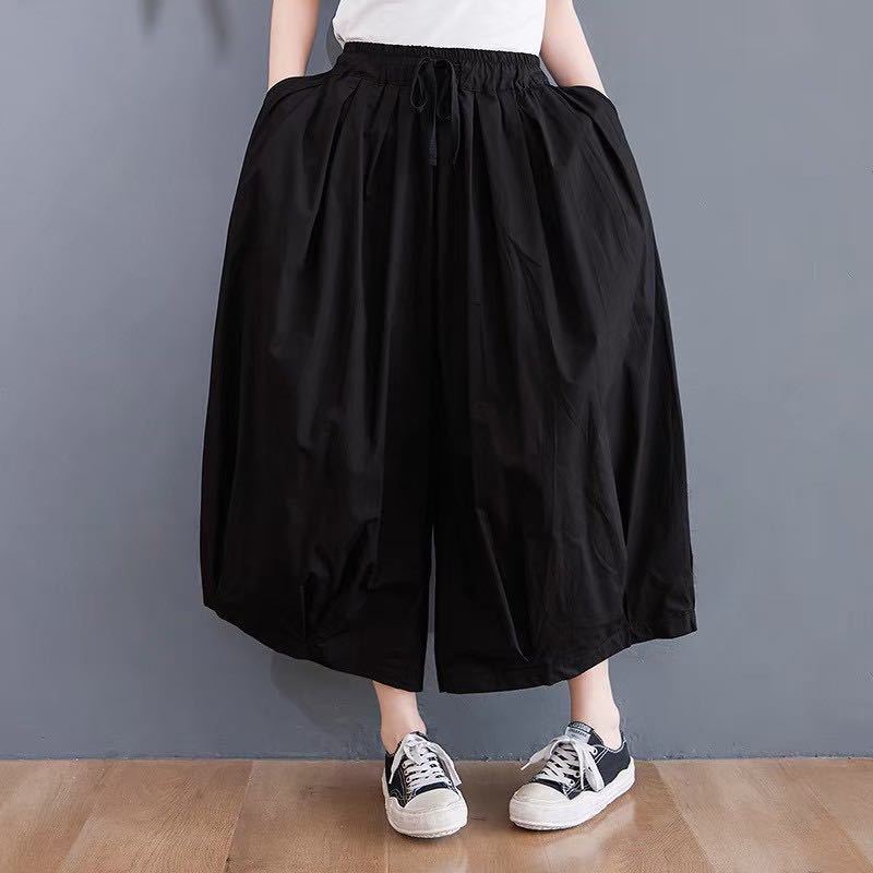 『 ワイドパンツ ボトムス カボチャパンツ ハーフパンツ シンプル パンツ 体型カバー イージーパンツ ワイドレッグパンツ 』
