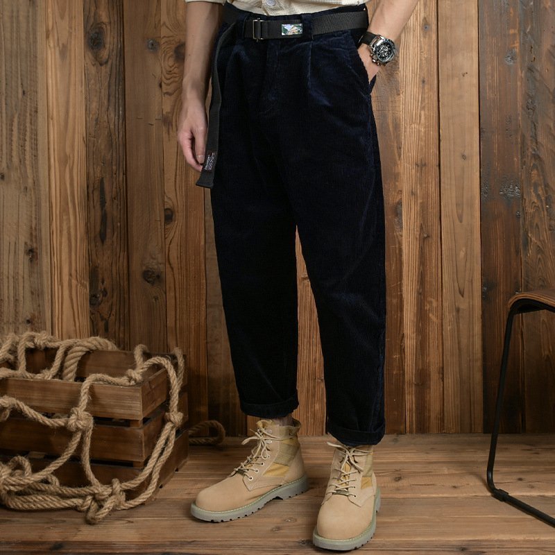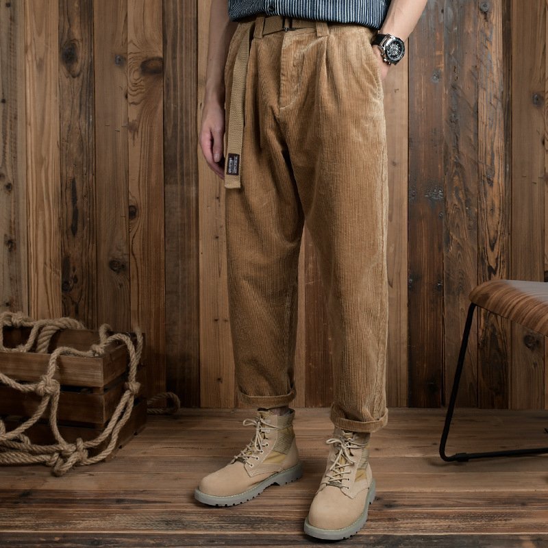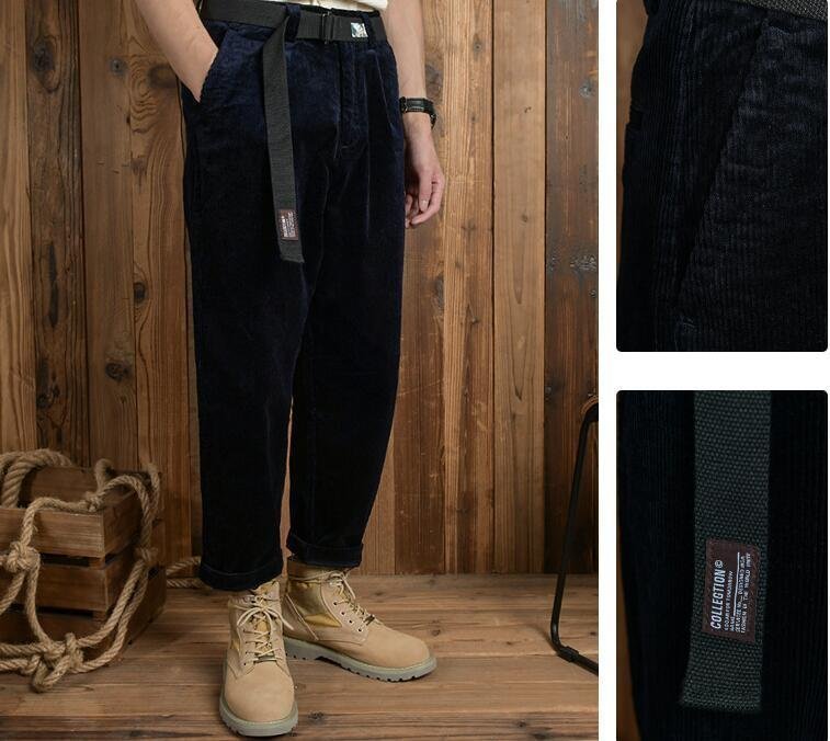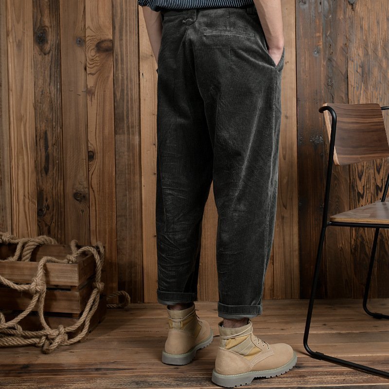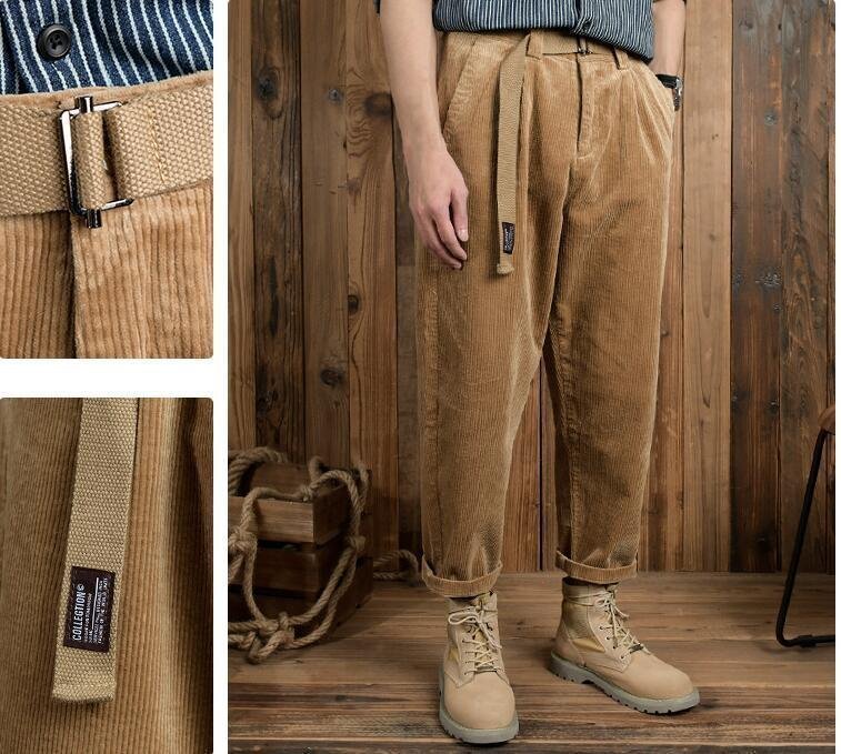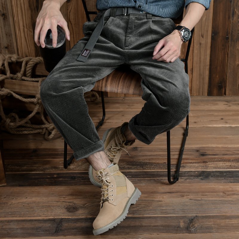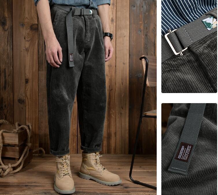 コーデュロイパンツ ストレート メンズ 新品 チノパン ブィンテージ ルーズ ゆったり 秋冬服 ズボン ベルト付き グレー W29~W36