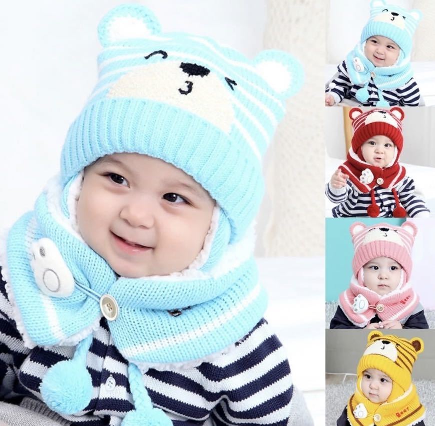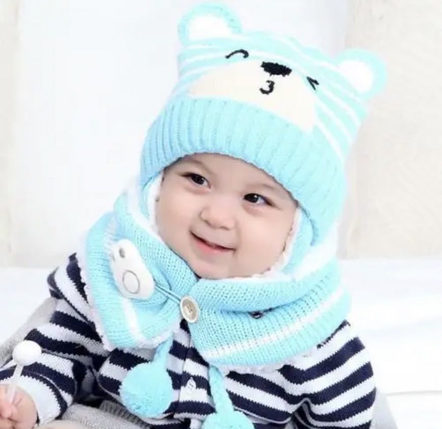 新作 ベビー用 ニット帽 クマさん キッズ キャップ スカーフ 可愛い!クリスマス ウール 初詣 公園 男の子 女の子ベビーカー755