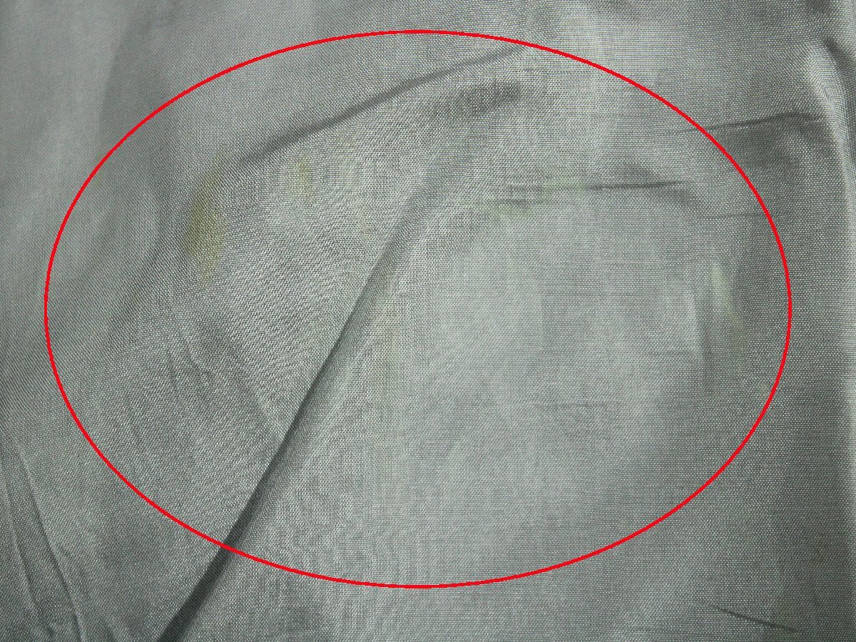 ・前裾中央裏にシミが見受けられますが、表地に影響はありませんので、着用に支障はないかと思われます。(画像9枚目)