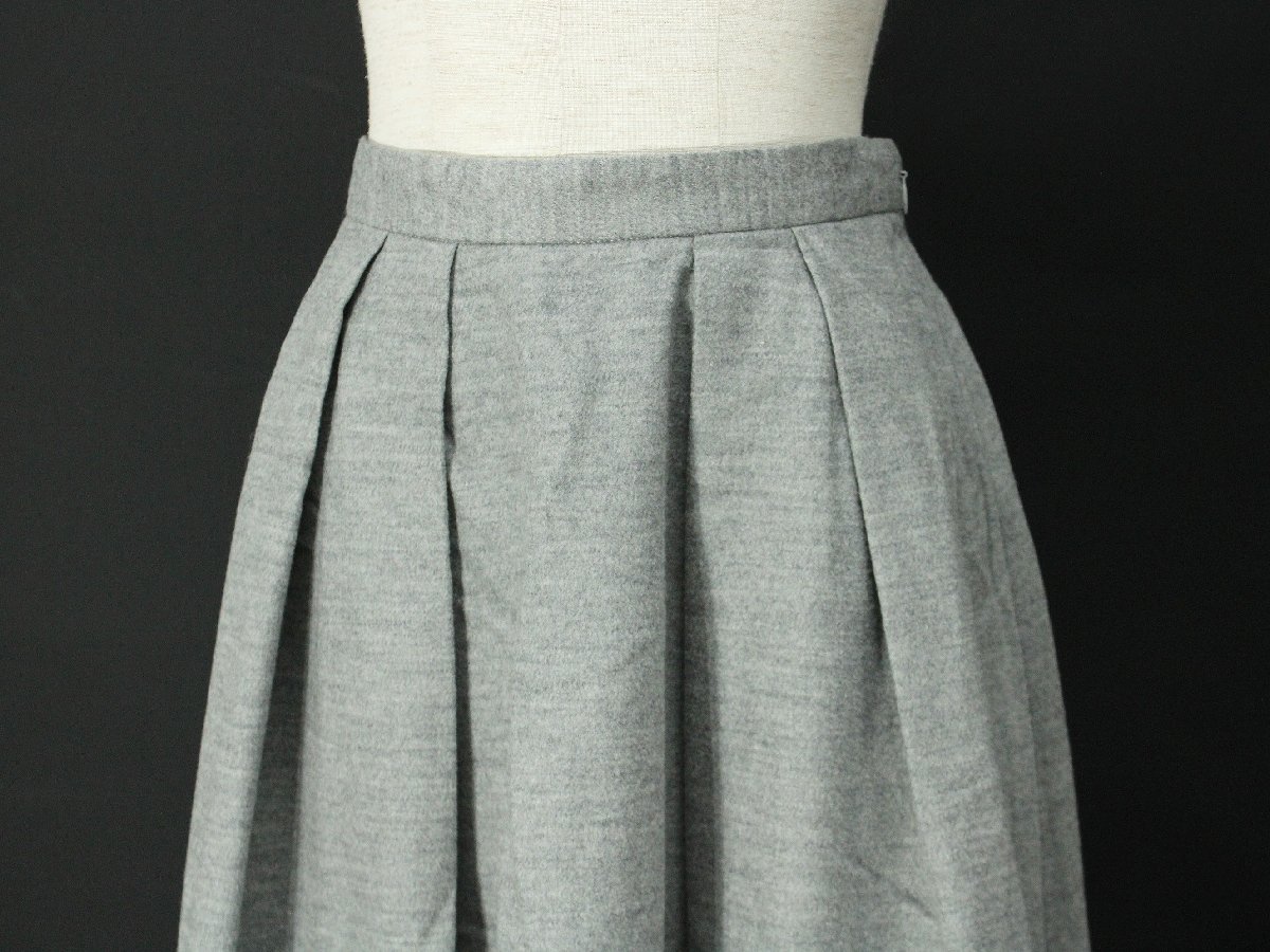 小さいサイズ美品 トゥモローランド ウールミモレ丈フレアスカート グレー32 ri159