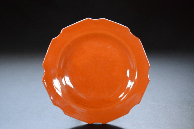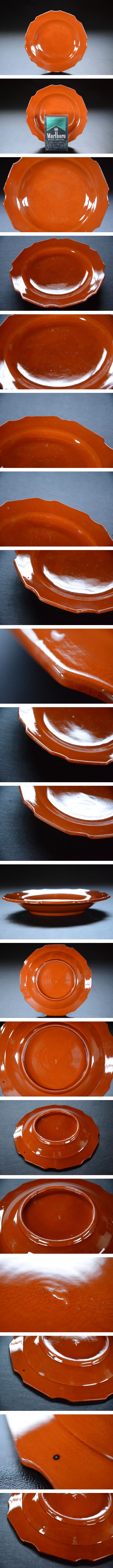 【十三】 淡路焼無地無紋輪花五寸皿 其ノ三 検索用語→A0182珉平焼民平焼交趾焼隅切江戸古道具アンティークリムプレート