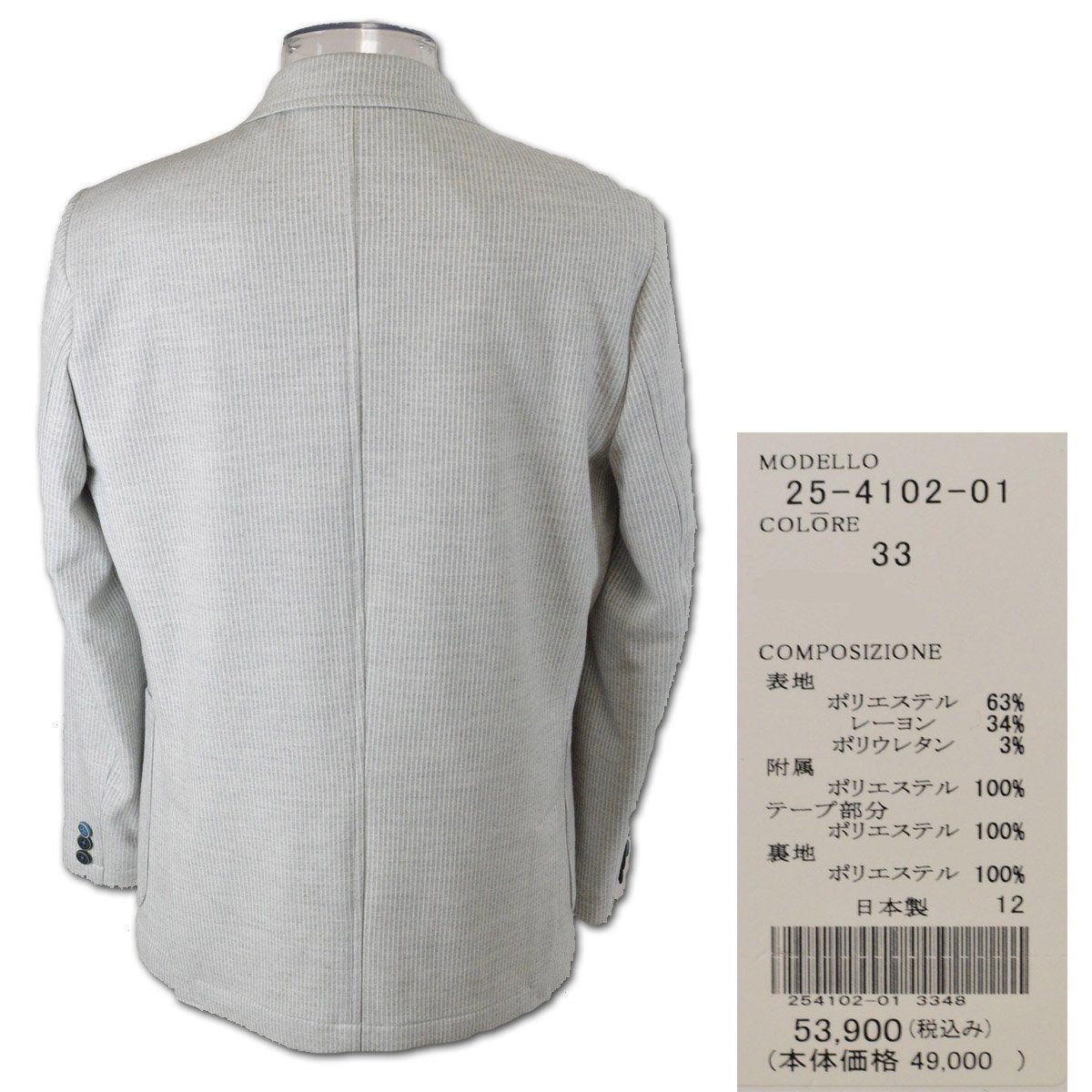 3割引【BBCO ビビコ】メンズ ジャケット L(48) ライトグレー 25-4102-01-33 アンジェロ 秋冬用 カジュアル おしゃれ かっこいい 高級素材 @