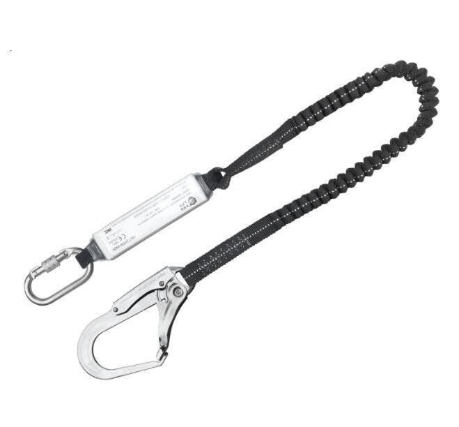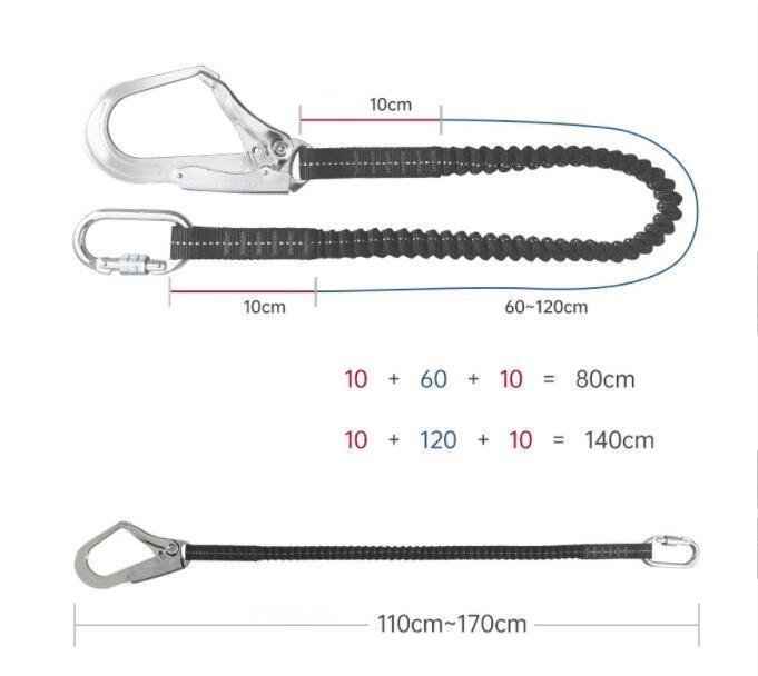 1丁掛けタイプ ランヤード ダブルランヤード 伸縮ストラップ式 蛇腹式ロープ フック 80-120cm 一般作業用 フルハーネス型用