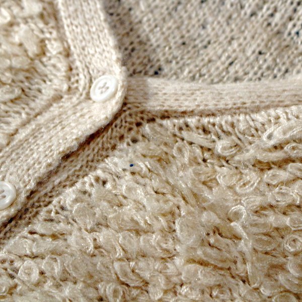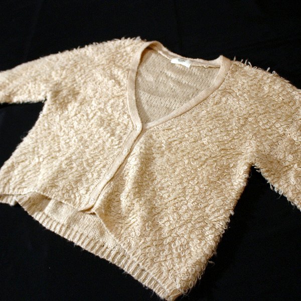 大きめのブークレが可愛い、ゆったり厚手のニットカーディガンんです。