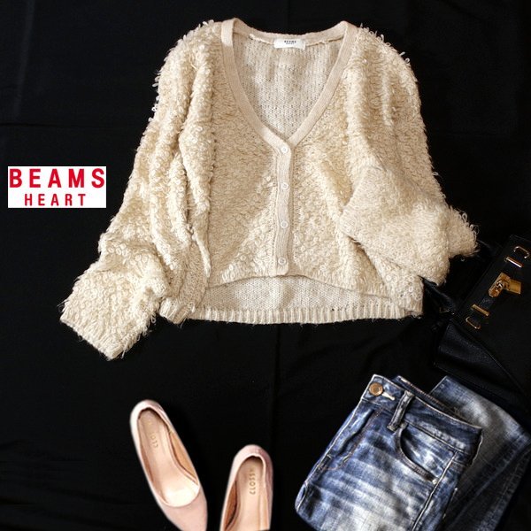 ☆☆ 美品 ビームスハート BEAMS HEART ☆☆ ゆったり可愛い 大きめブークレ 厚手ニット カーディガン F 秋 冬 23A12