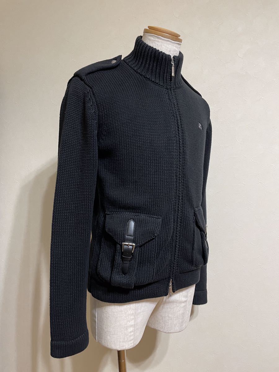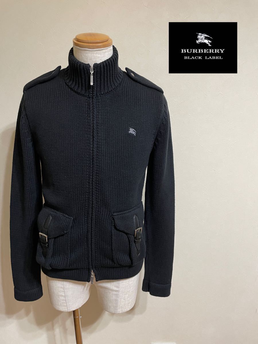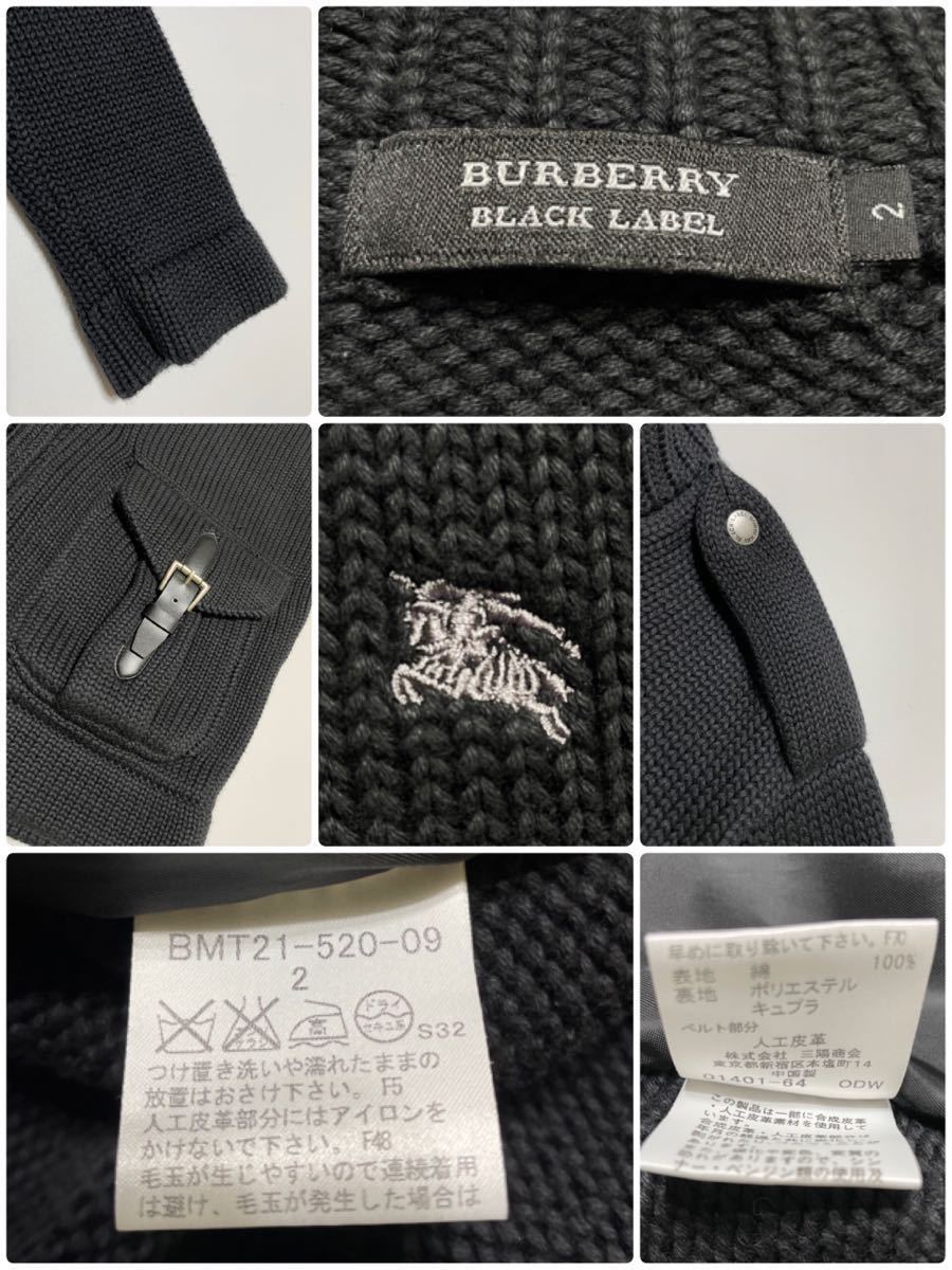 【良品】 BURBERRY BLACK LABEL バーバリーブラックレーベル ニット ジップアップ ジャケット トップス サイズ2 長袖 黒 BMT21-520-09