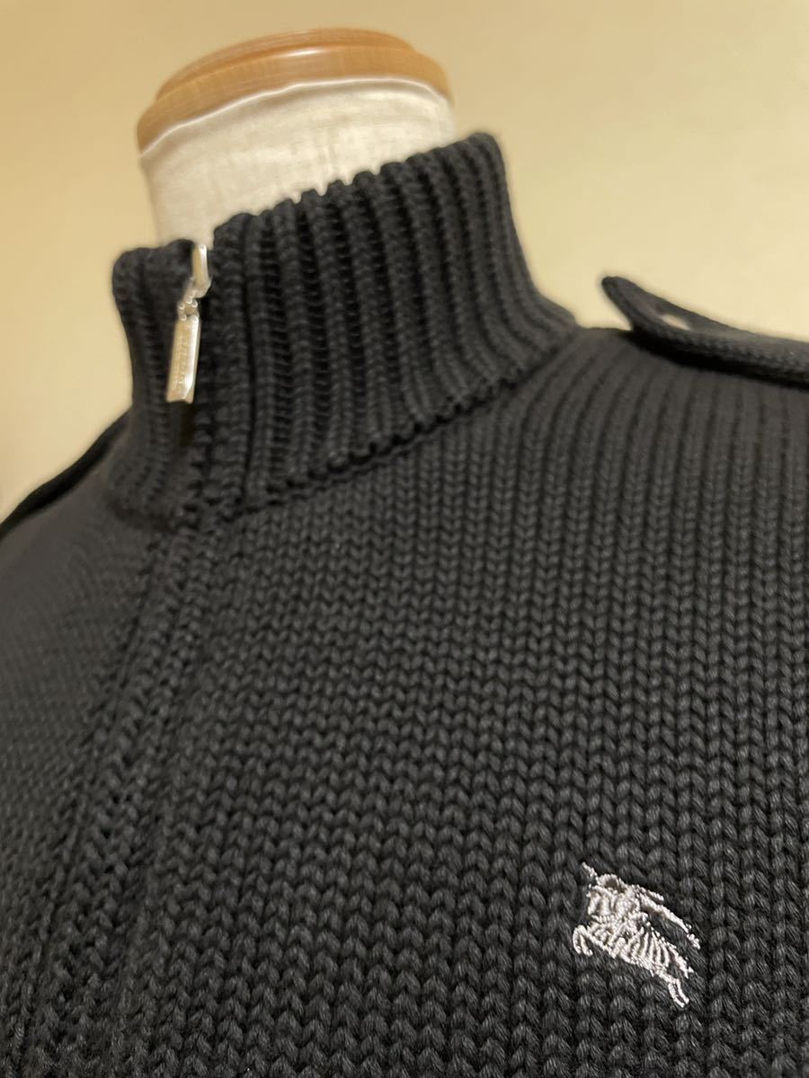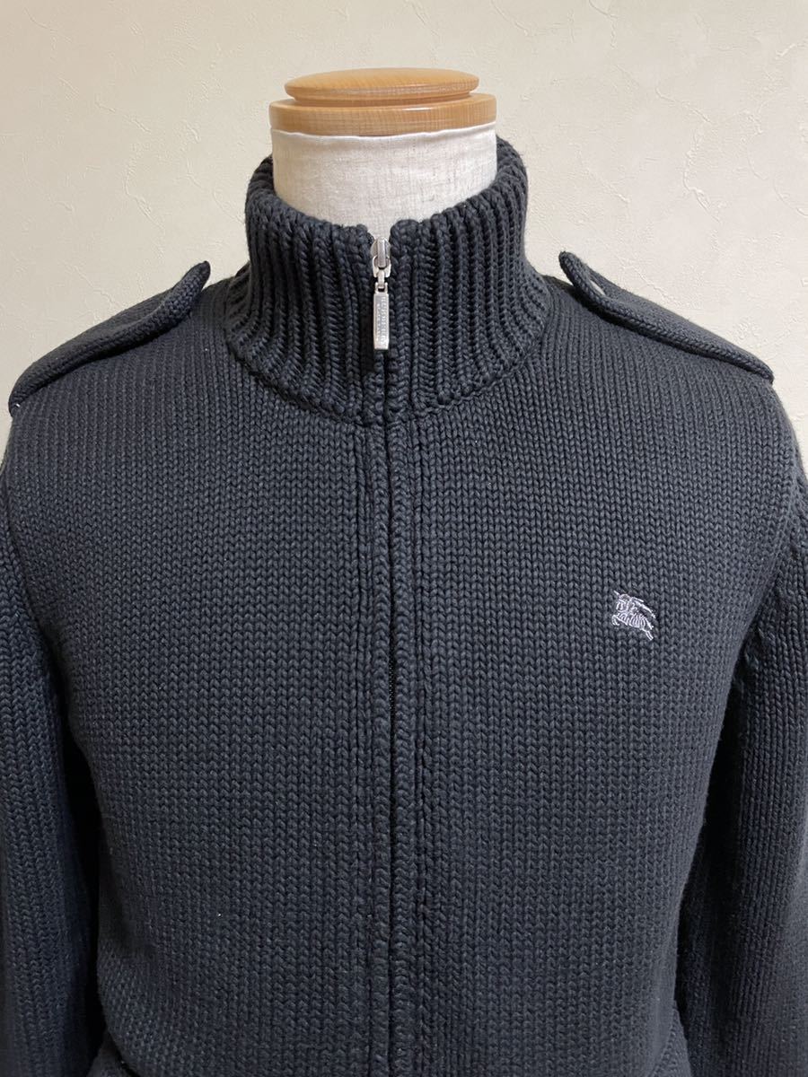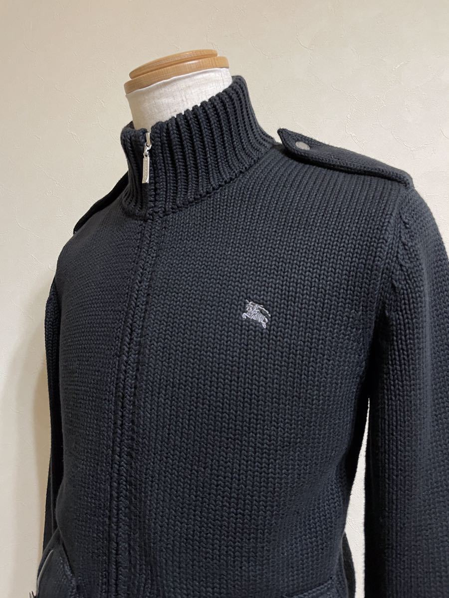 【良品】 BURBERRY BLACK LABEL バーバリーブラックレーベル ニット ジップアップ ジャケット トップス サイズ2 長袖 黒 BMT21-520-09