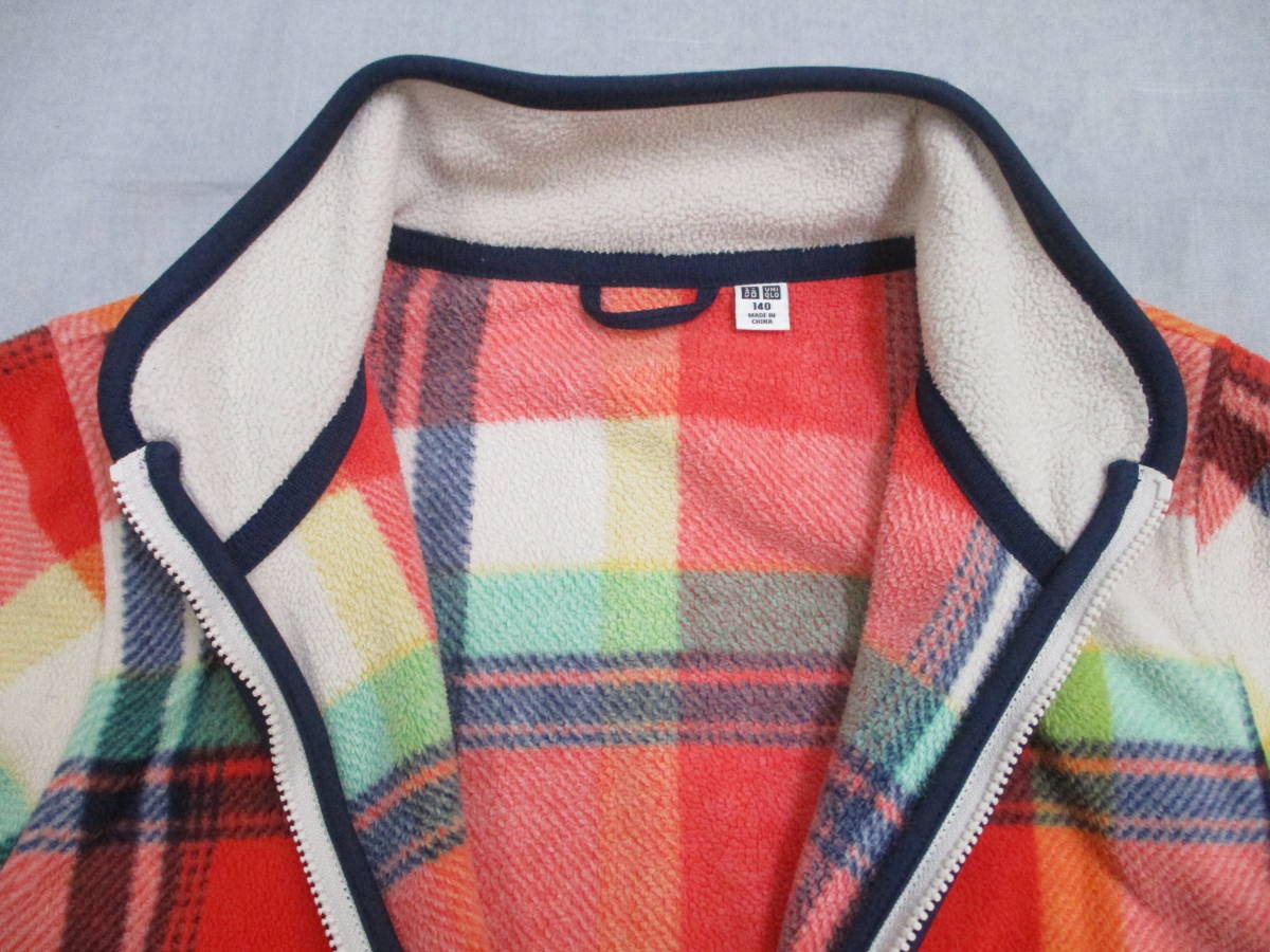 ユニクロ キッズ フリース ジップアップ 140サイズ チェック