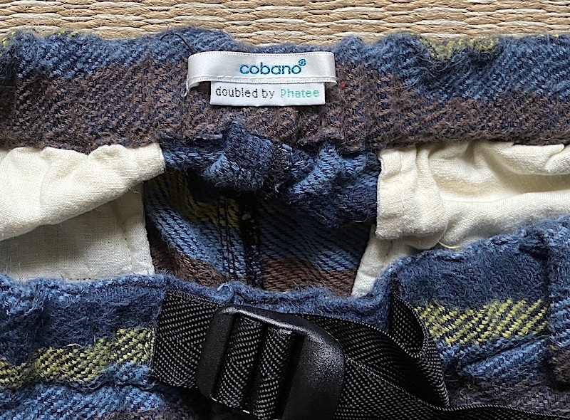 色はネイビー青系に黄色とブラウンのストライプ