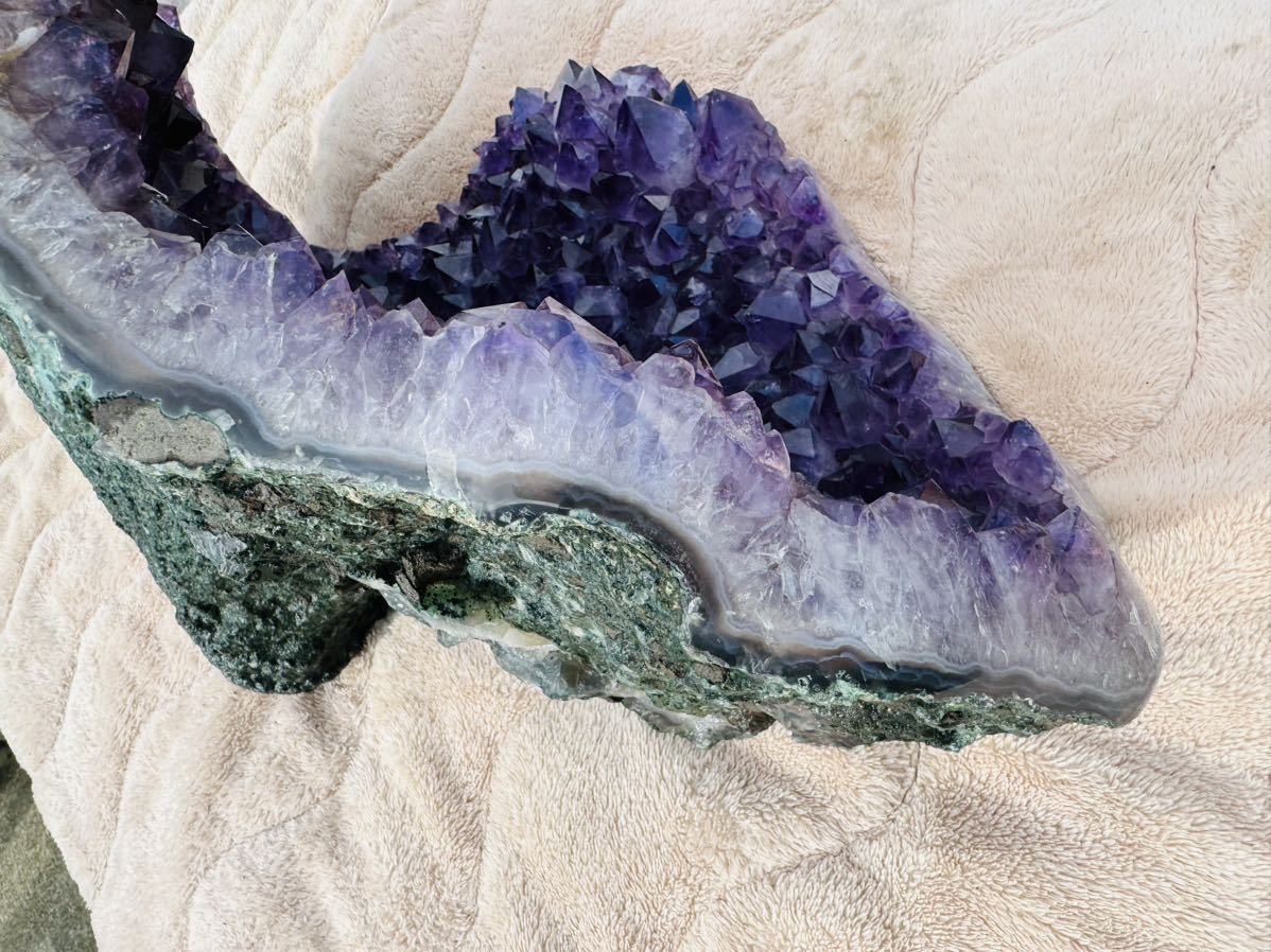 透き通った美しい紫の色をした水晶です。はるか昔より紫は高貴な色とされ、様々な宗教儀式に用いられ、皇族にも愛用された水晶です。宝石としても人気があり、その透徹しながらも深みのある紫は、どんなシーンでも気品溢れる優雅さを演出してくれます。