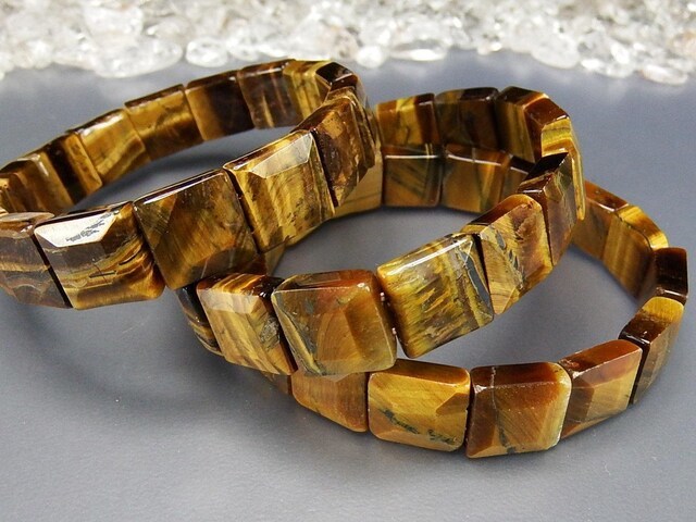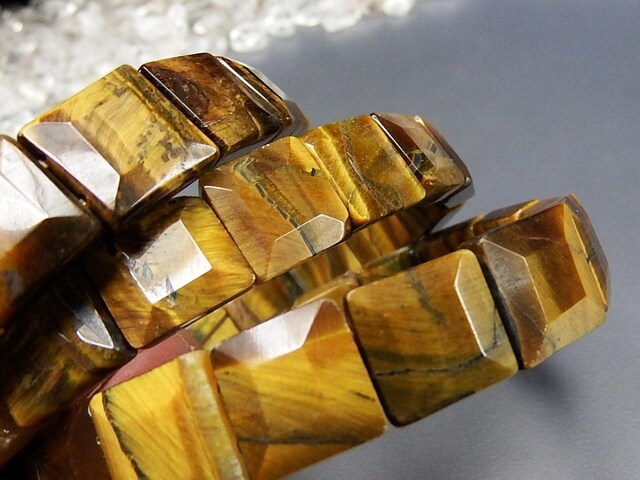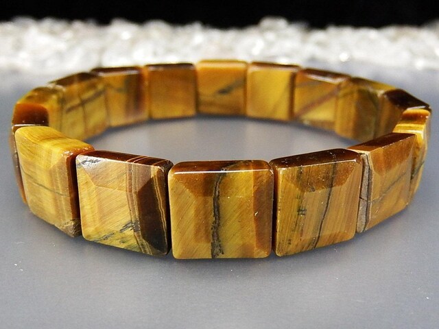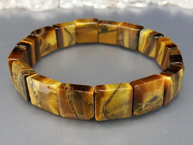 AAタイガーアイ四角カットバングルブレスレット天然石仕事運金運プライム