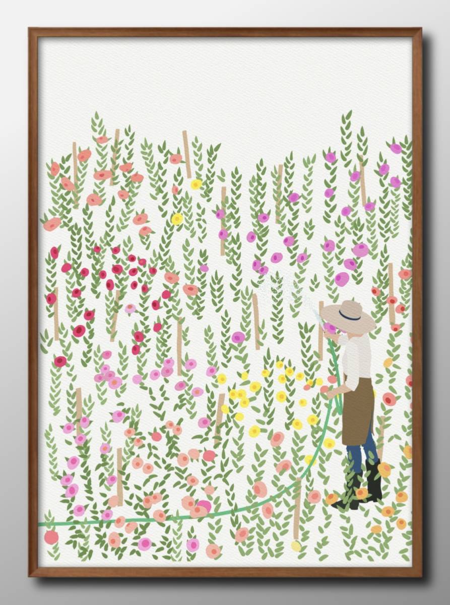 14295■送料無料!!アートポスター 絵画 A3サイズ『ガーデニング フラワー 花』イラスト 北欧 マット紙