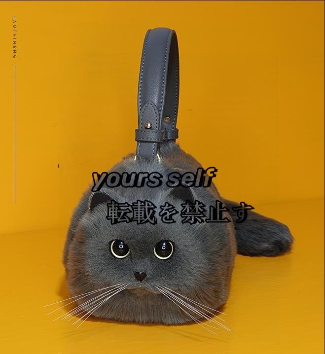 極上品★ プレミアム人気商品 猫バッグ ふわふわもこもこ超可愛い猫ショルダーハンドバッグ 化粧品 コスメケース おしゃれ小物入