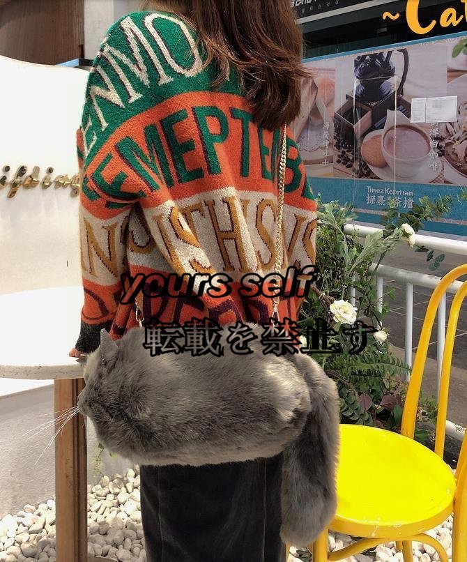 人気美品★ プレミアム人気商品 猫バッグ ふわふわもこもこ超可愛い猫ショルダーハンドバッグ 化粧品 コスメケース おしゃれ小物入