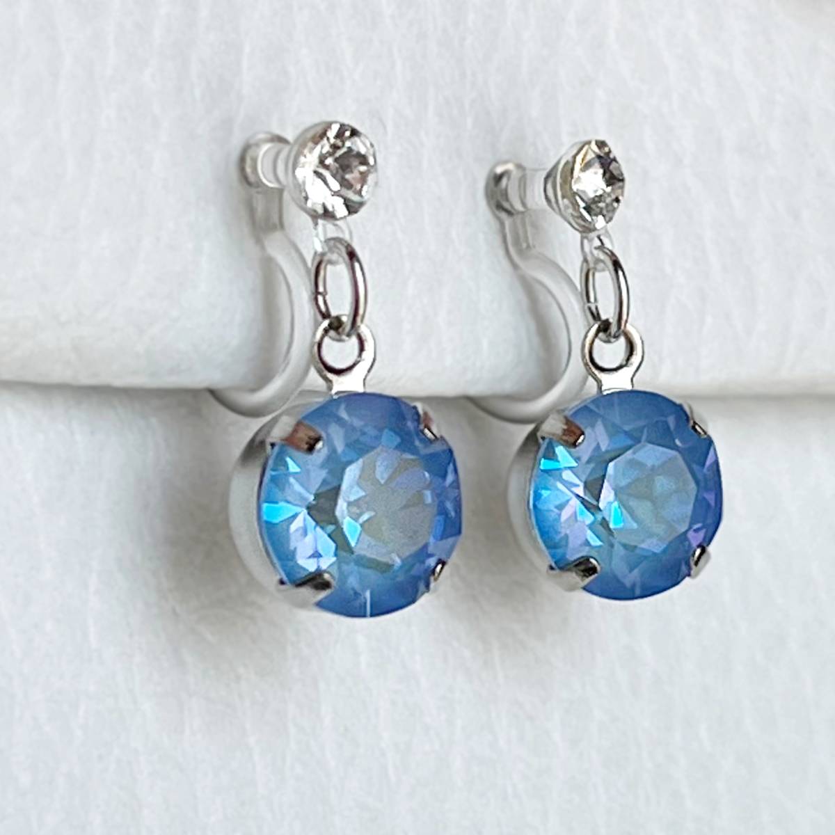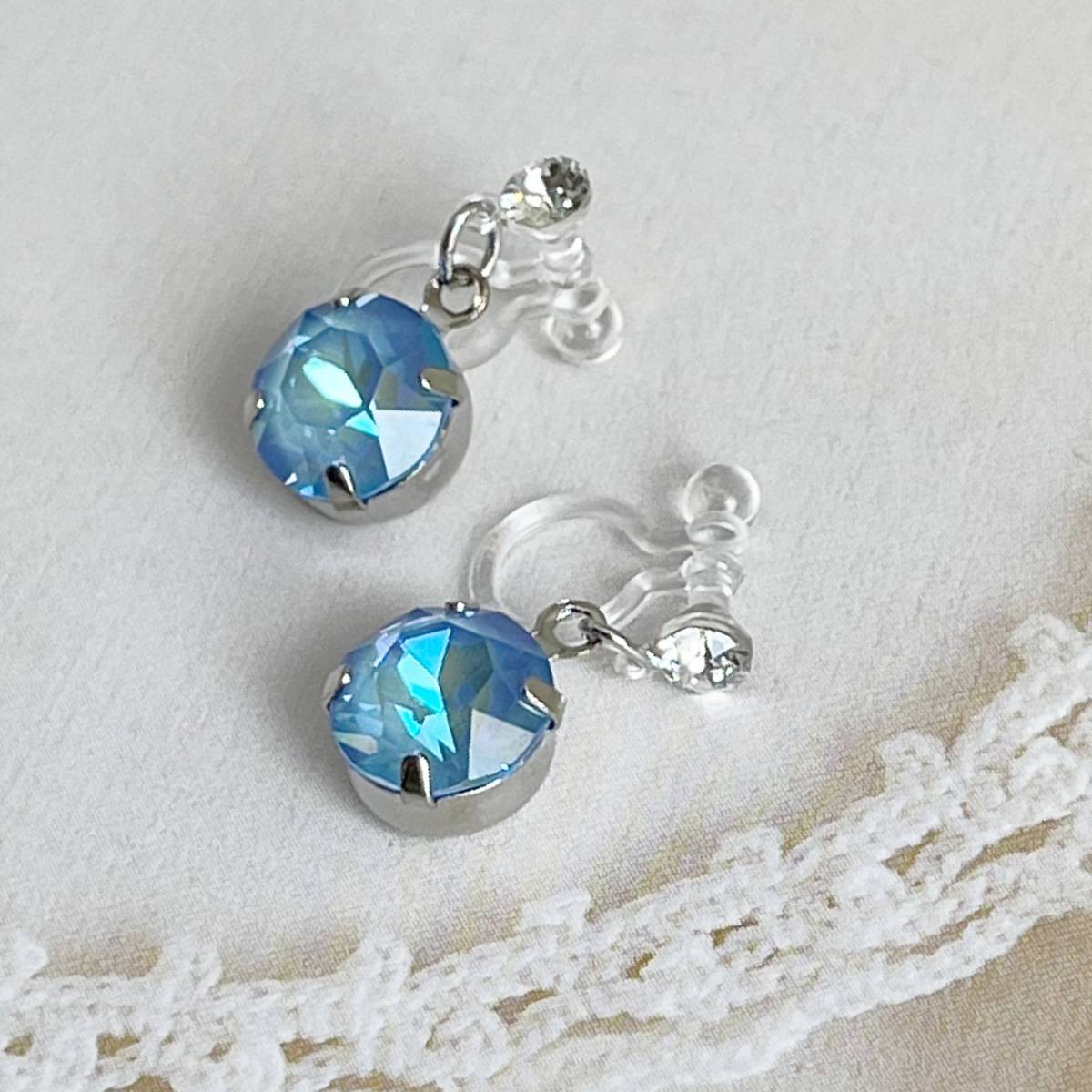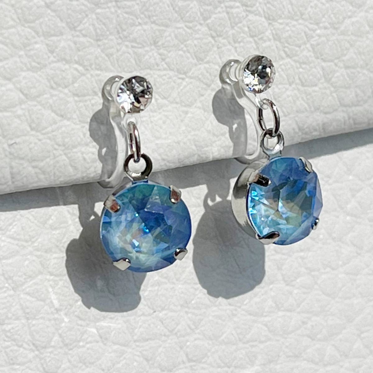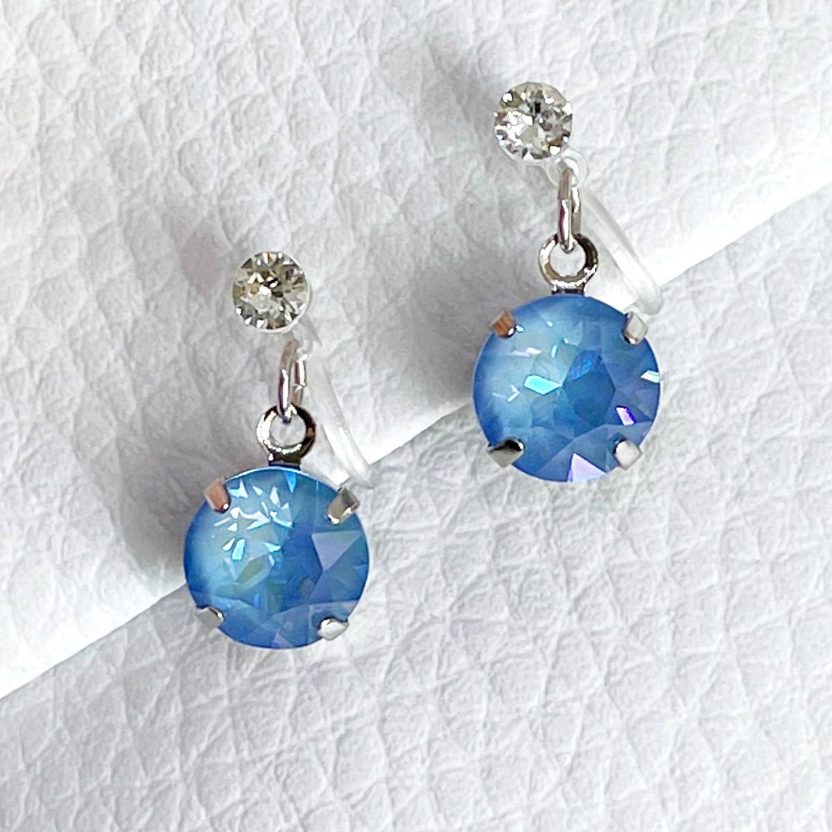 シンプル*ノンホールピアス*スワロフスキークリスタル・オーシャンディライト使用