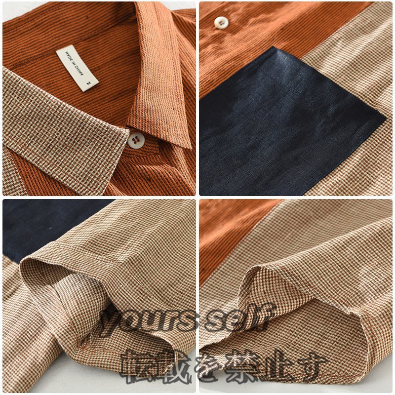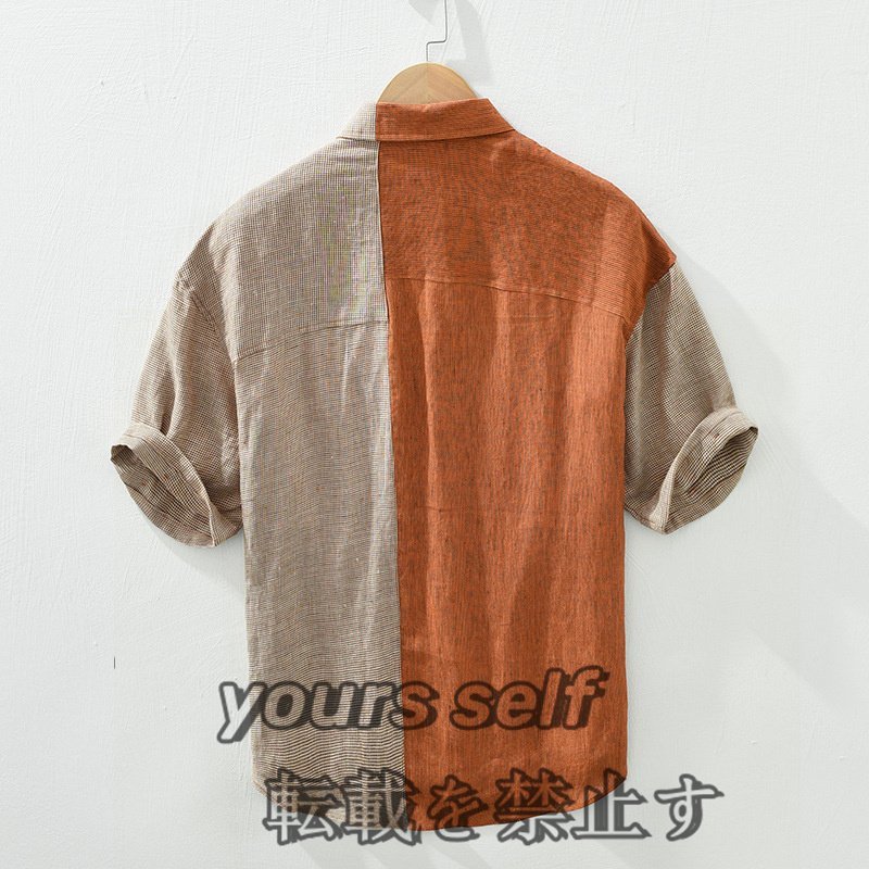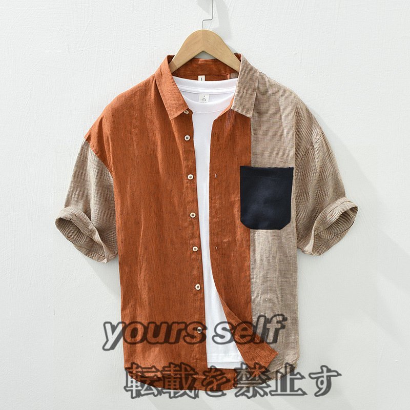 特価★リネンシャツ 半袖シャツ 夏新品 サマーシャツ 麻100% メンズ 個性 配色 ヴィンテージ 薄手 超希少 切替 カジュアル 心地良し XL