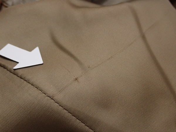 こちらの商品は中古品です。使用感は少ないです。 左わき下裏地に引っ掛け跡が見られます。特に目立つ汚れやダメージなどは見られません。 | |