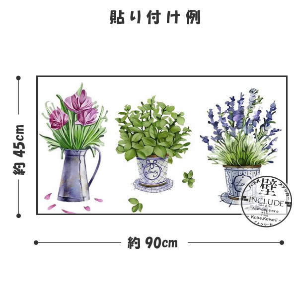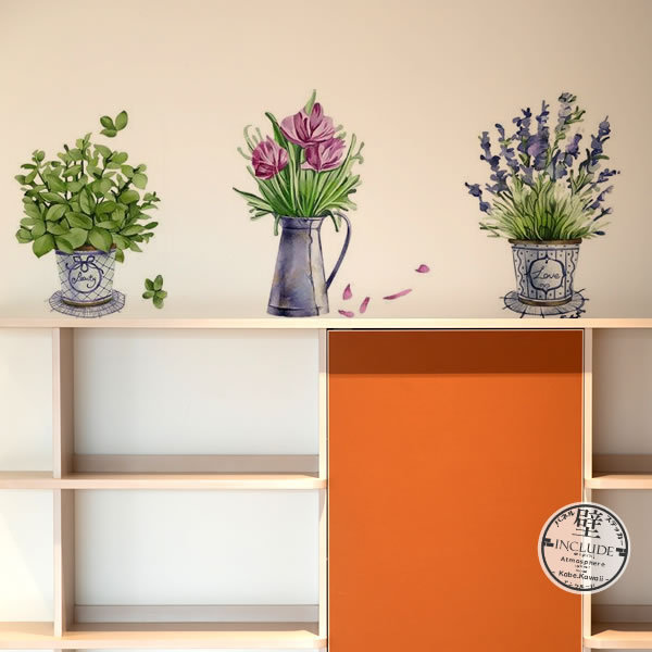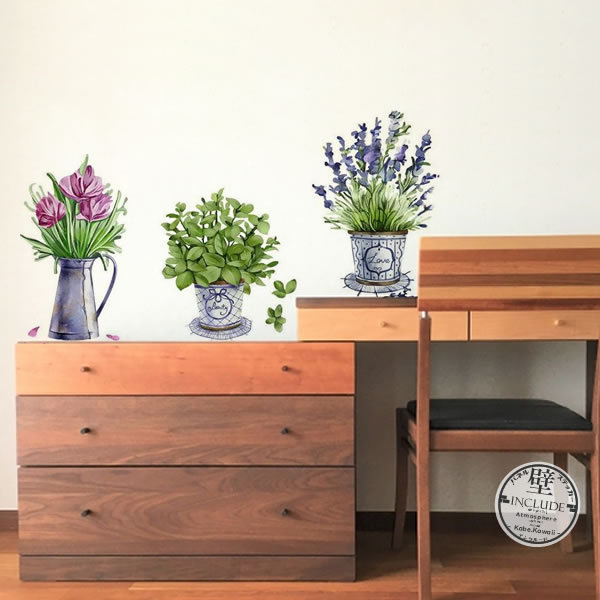 壁ステッカー ウォールステッカー 花瓶 フラワーベース 陶磁器 花器 シングルフラワー ピンクの花 青い花 ブルーフラワー ポッド