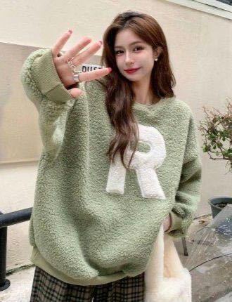 フロントに大きめのRロゴのもこもこで暖かくてかわいいプルオーバーパーカーです♪